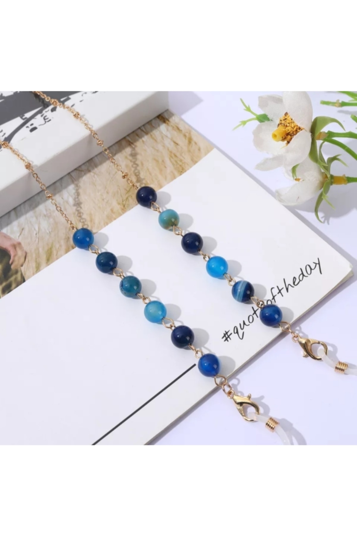 Kadın Mavi Akik Taşı Doğal Taş Güneş Gözlüğü Zinciri Boncuklu Gözlük Ipi Askısı