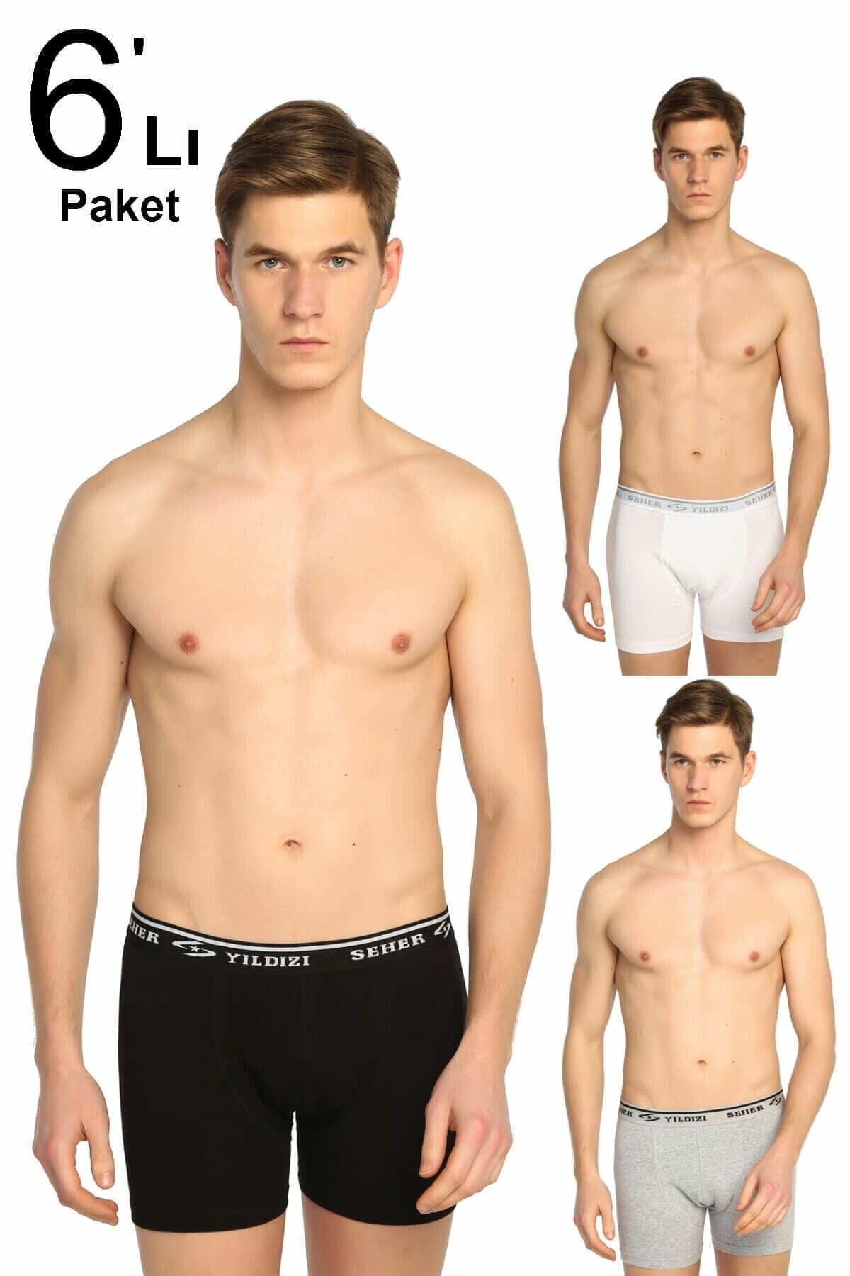 Erkek Gri 6'lı Paket Likralı Boxer Elf568s0060ccm6 0060