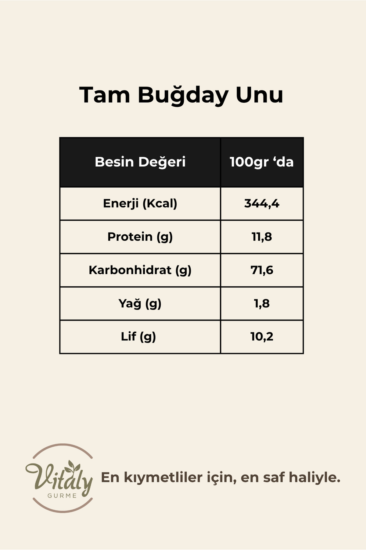 💚 Neden Vitaly Gurme Tam Buğday Unu? 🌾 Taş değirmen öğütümüyle besin değeri korunur.