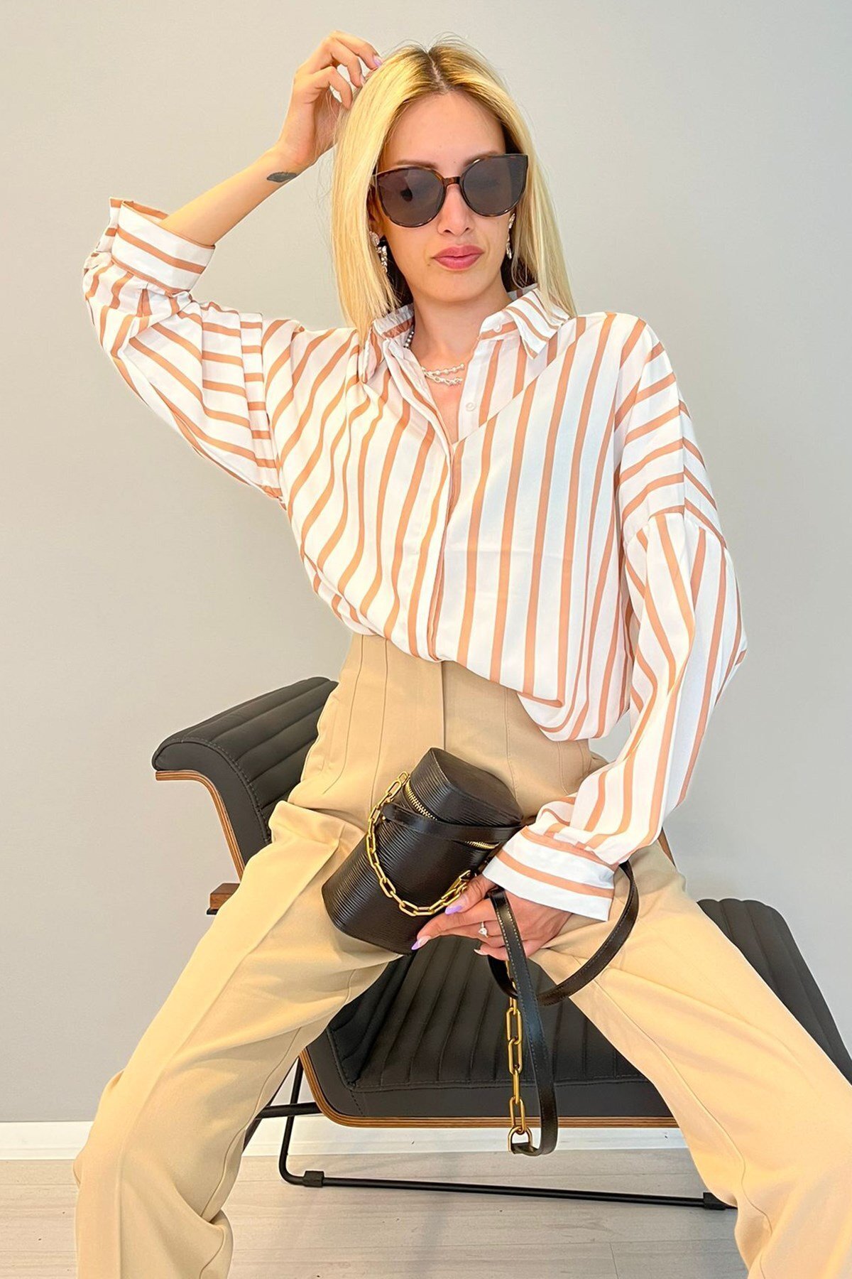 Çizgili tasarımı ile zamansız bir görünüm sunan bu gömlek, her ortama uyum sağlar.