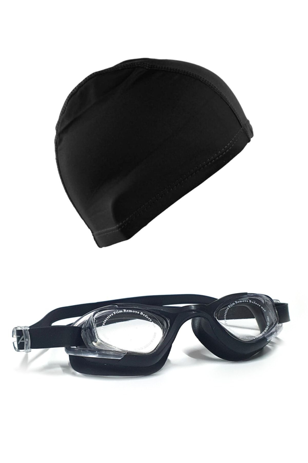 Yetişkin Silikon Yüzücü Gözlüğü ve Likra Yüzücü Bonesi Yüzücü Seti Havuz Seti Özel yeni dizayn şeffaf kutuda.