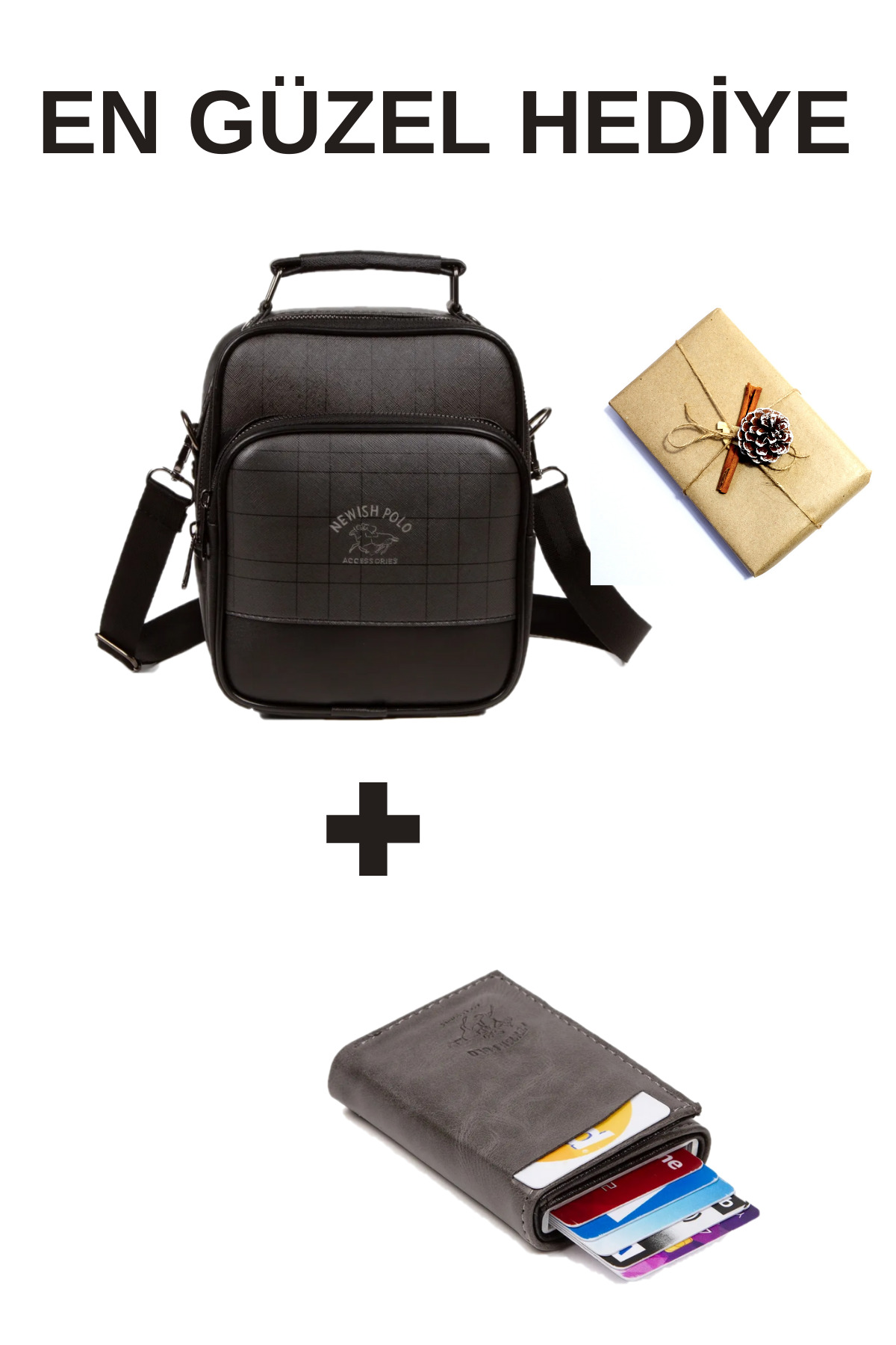 Erkek Vegan Deri El Ve Omuz Çantası, Çapraz Erkek Çanta, Telefon Bölmeli Siyah (Büyük Boy)