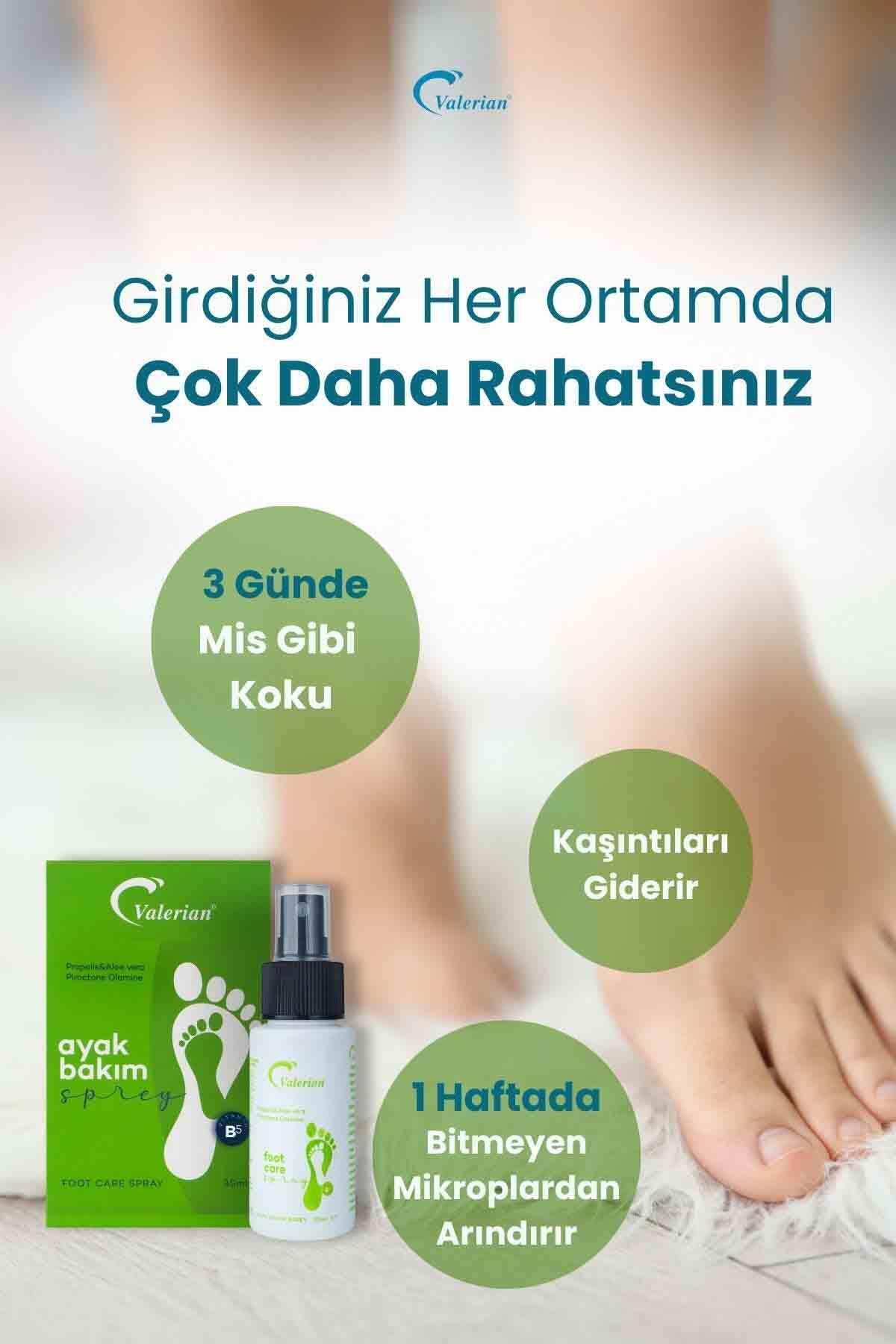 Valerian Ayak Bakım Jeli ve Spreyi bir arada! Nemlendirme, koruma ve ferahlık için mükemmel ikili.