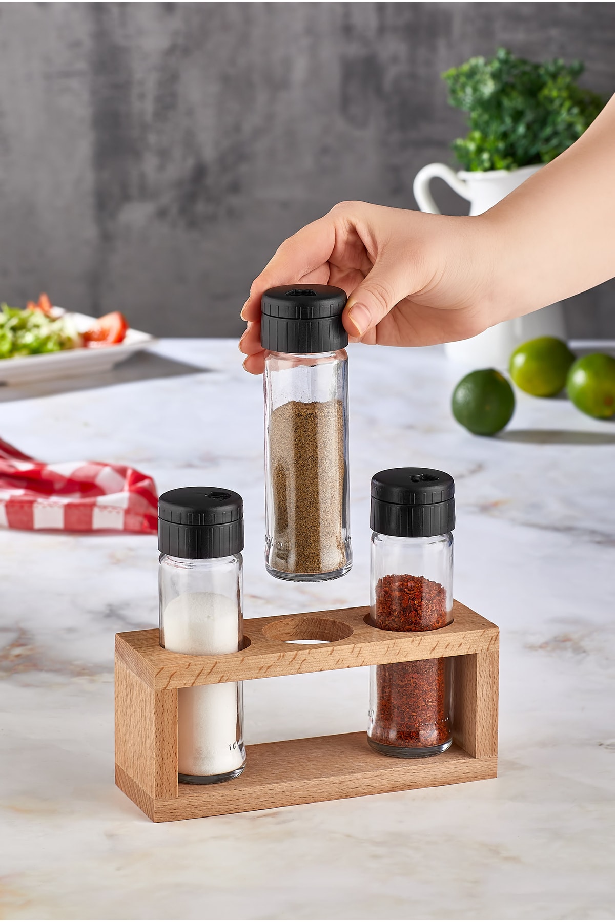 1 adet baharat standı 3 adet şişeden oluşmaktadır