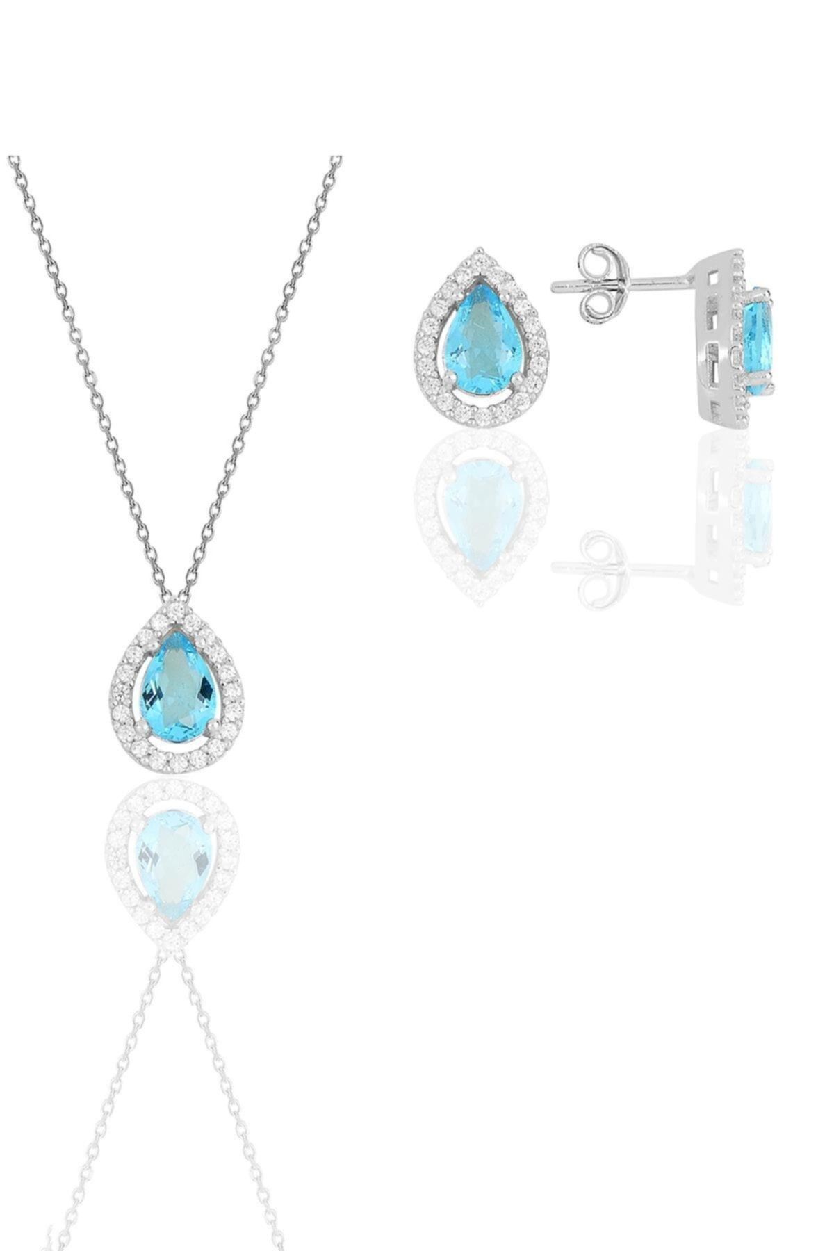 Montür Boyutu En:8.7 mm Boy:11,6 mm Zincir Uzunluk:45 cm Safir taşların zarif ışıltısı, gümüş malzemenin asaletiyle birleşerek göz alıcı bir takım oluşturur