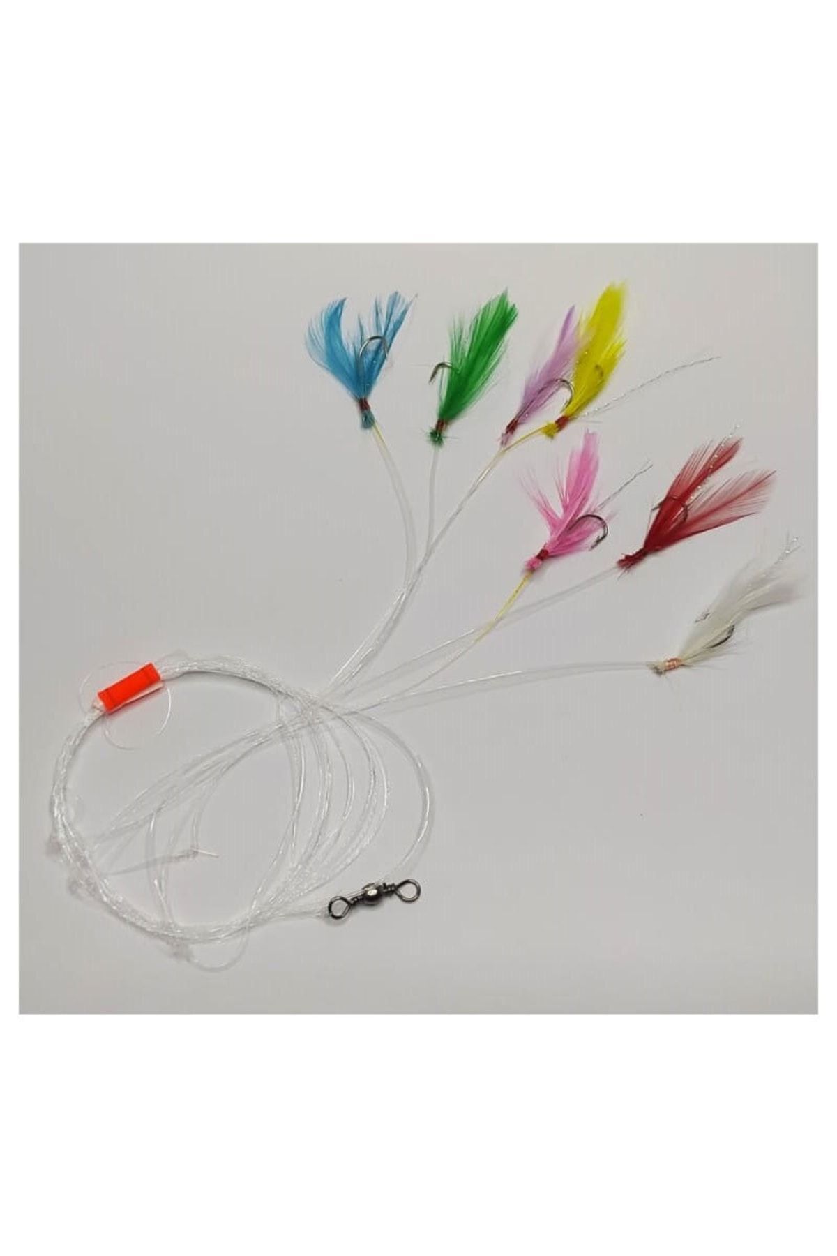 ALDOS Kıyıdan Palamut Çinekop Çaparisi renkli horoz tüylü, Genelde çinekop, lüfer, palamut, uskumru, kolyoz, istavrit balıklarında kullanılır.