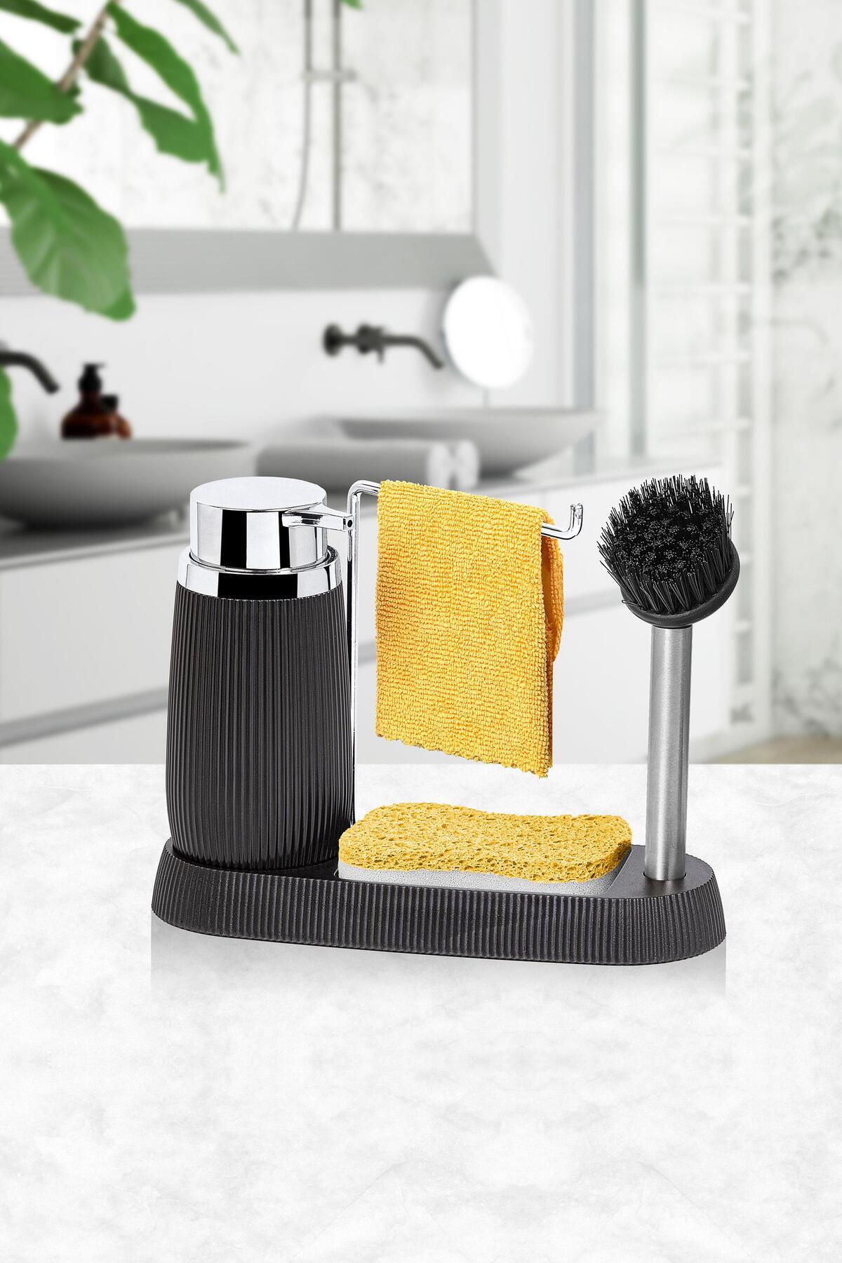 Okyanus Home Siyah Premium Lavabo Seti Ürüne görseldeki sünger ve mutfak bezi dahil değildir.