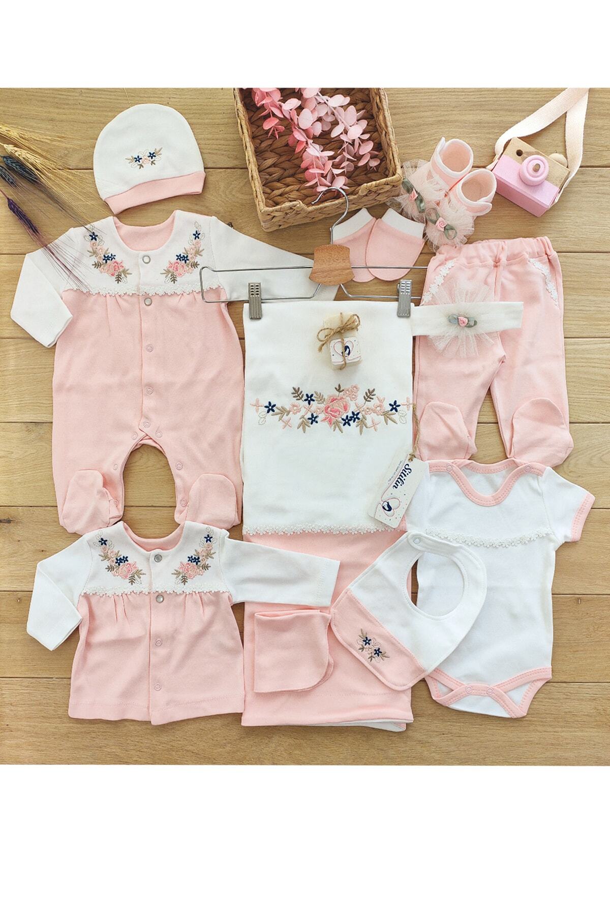 Kız Bebek Ekru 10'lu Hastane Çıkışı Natural Işlemeli Set