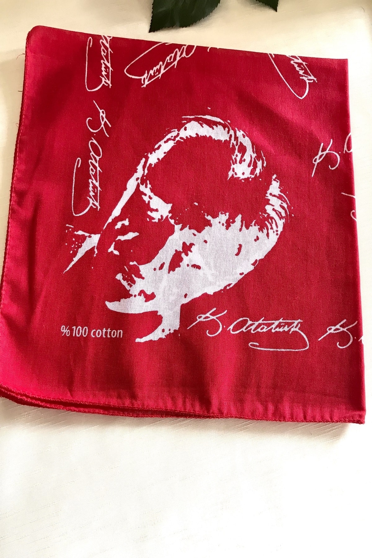 Atatürk portresi ve imzalı tasarımıyla dikkat çeken bu bandana, hem şıklığınızı tamamlar hem de tarihi bir dokunuş sunar