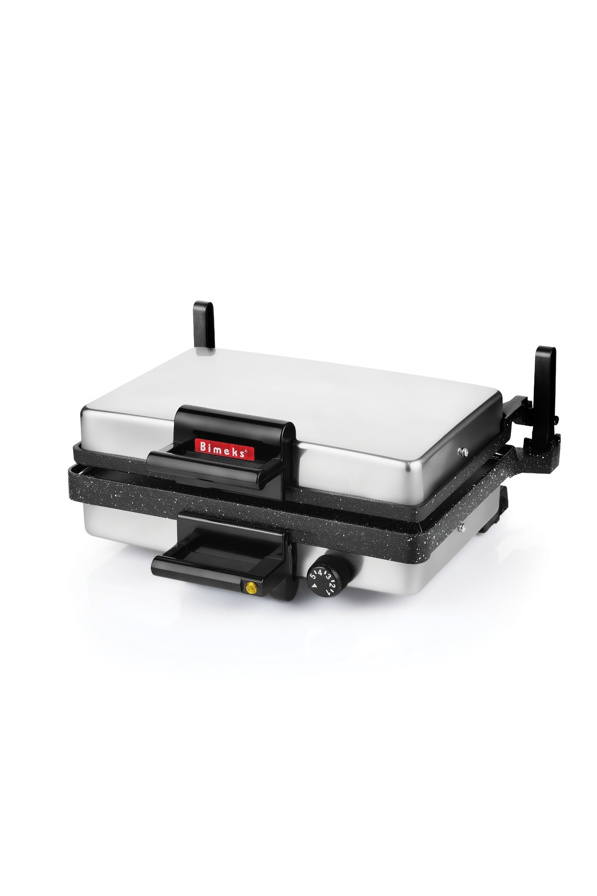 Bimeks Turbomeks & Multigrill & Lahmacun & Bazlama (KLASİK MODEL) Yemek Tavası Hariç ! 1989’dan beri Avrupa’da satışta olan Bimeks Turbomeks 2010 yılından itibaren Türkiye'de %100 Orijinal olarak Raha Pazarlama (Distribütör) güvencesiyle satışı yapılmaktadır. Lütfen Taklitlerimizden Kaçınınız! Teknik Özellikler • 2 yıl garantili • Alt - 1100W / Üst - 1000W Toplam: 2100W • Alt - Üst Plate ( Izgara Tablası): Üç kat dayanıklı astar ve granit kaplama • Alt ve Üst kapak: Paslanmaz Çelik Sac ( İnox) • 350 x 225 mm • Kulp ve Ayak: Bakalit • Rezistans: Paslanmaz Çelik (15 Yıl Ömür) • Kablolar: Yanmaz Cam Elyaf • Kilogram: 7Kg • 180 Derece Açılma Özelliği: Var • Alman Üretimidir