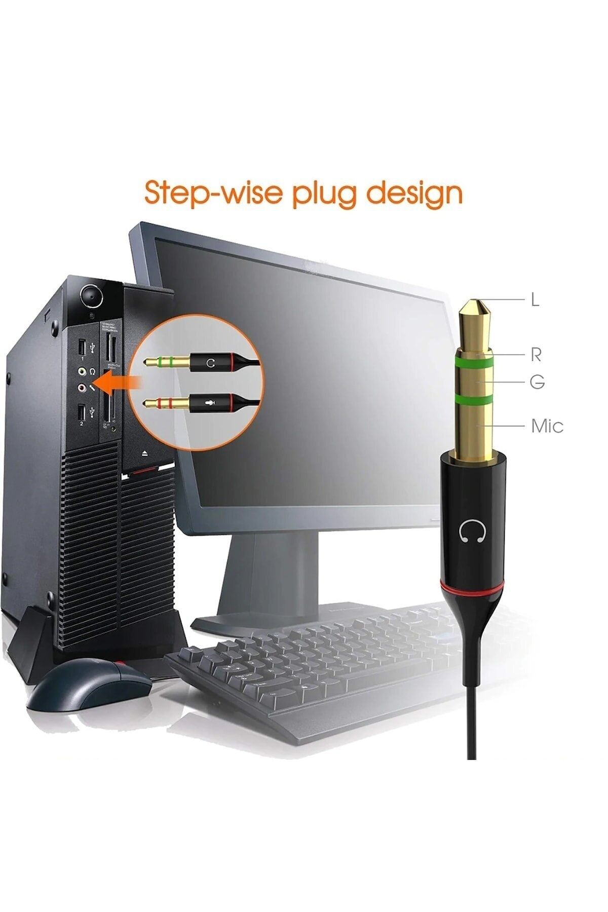Derwell 3.5 Mm Aux Kulaklık Mikrofon Dönüştürücü Birleştirici Kablo Çevirici Aparat