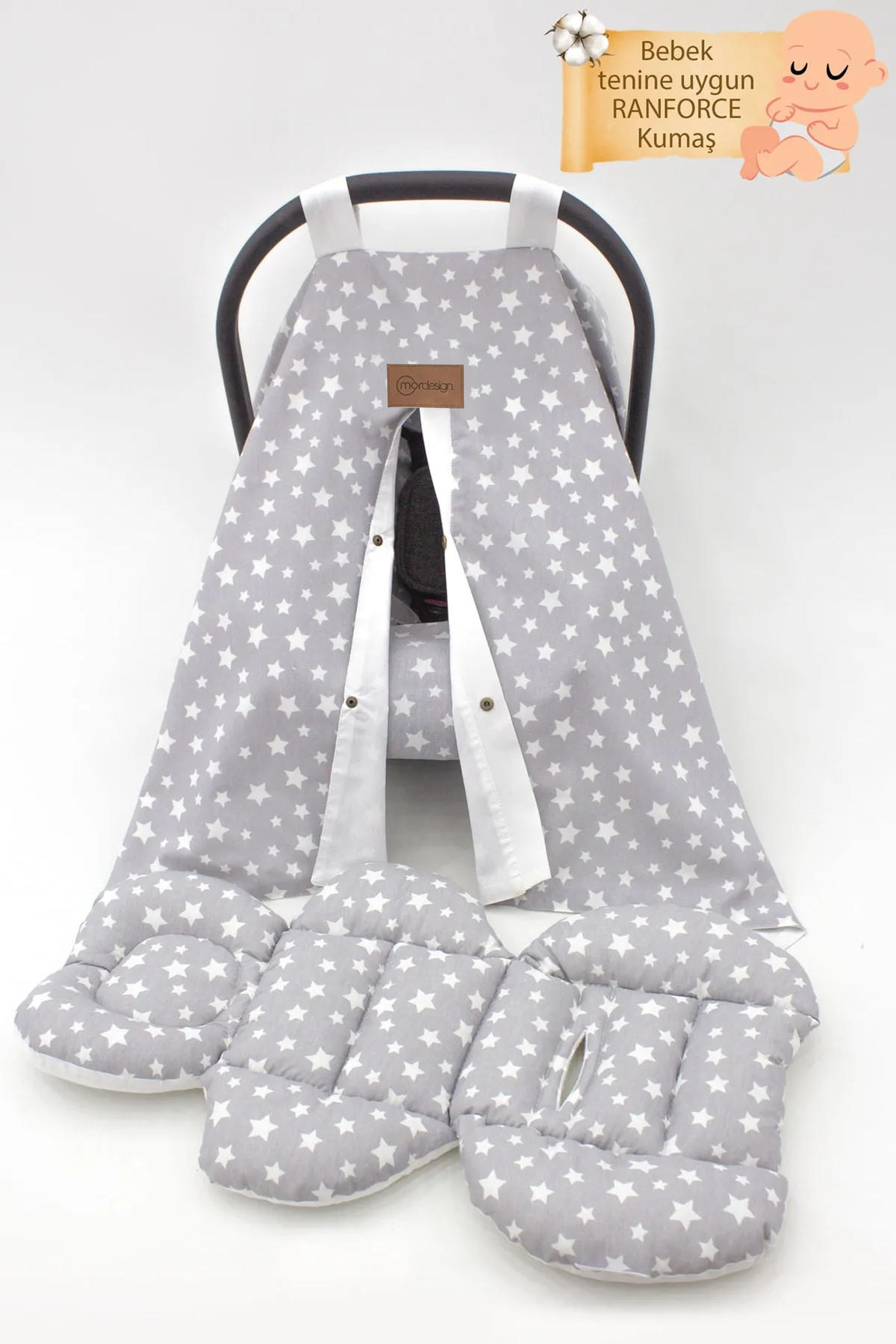 Ortopedik Bel Destekli Bebek Puset Minderi, Örtü Ve Çarşaf 3' Lü Set, Stars Serisi Morcadde, Mordesign markasıyla ebeveynlerin yeni doğan ihtiyaçlarını daha hesaplı bir hale getirerek satışa sunuyor.