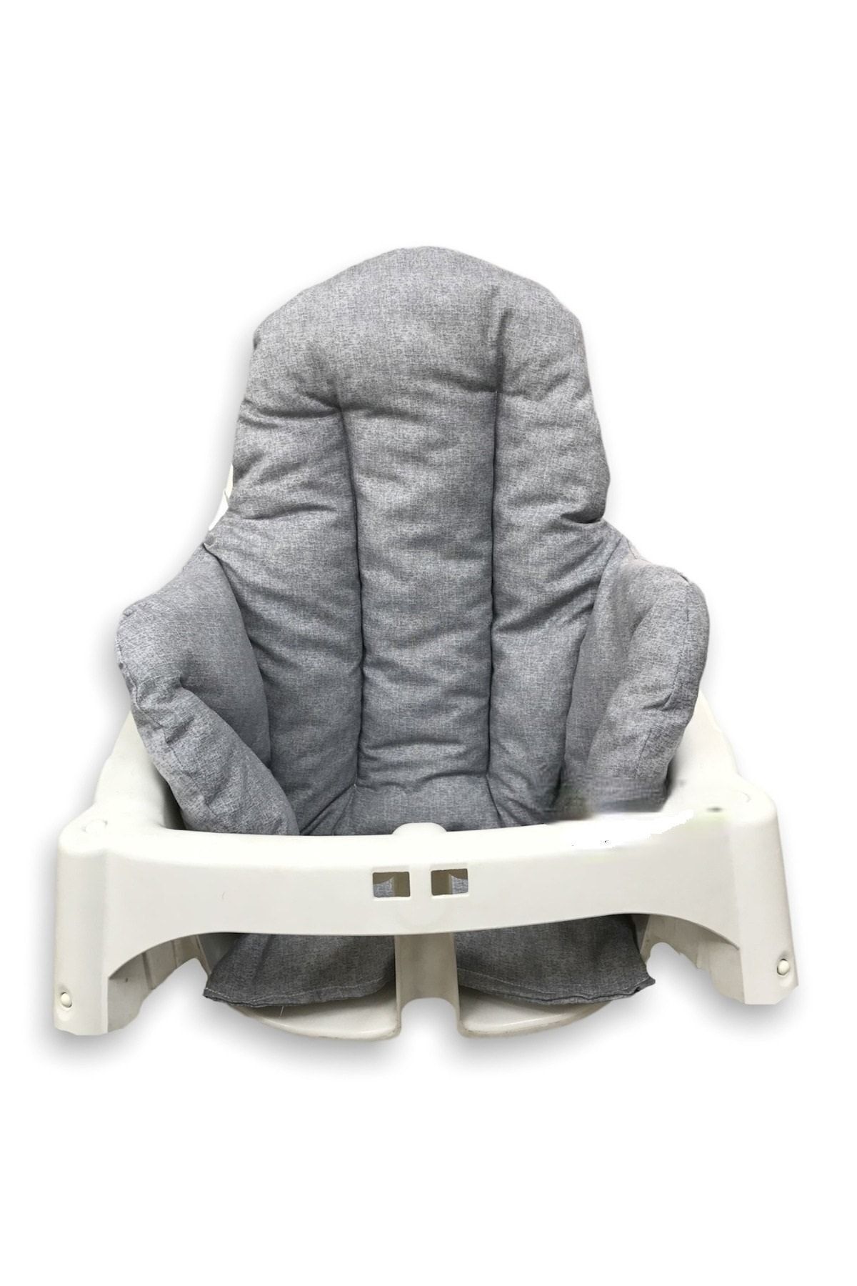 Çift taraflı kullanıma uygun Kırçıllı Gri renkli 1 adet mama sandalyesi minderidir.