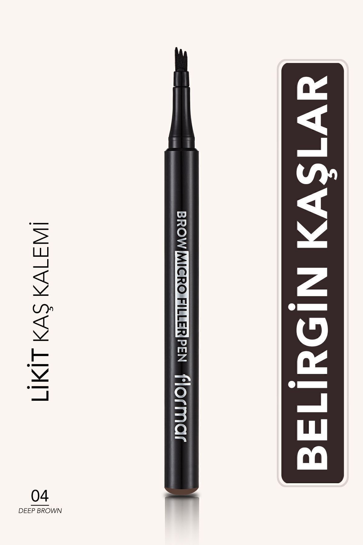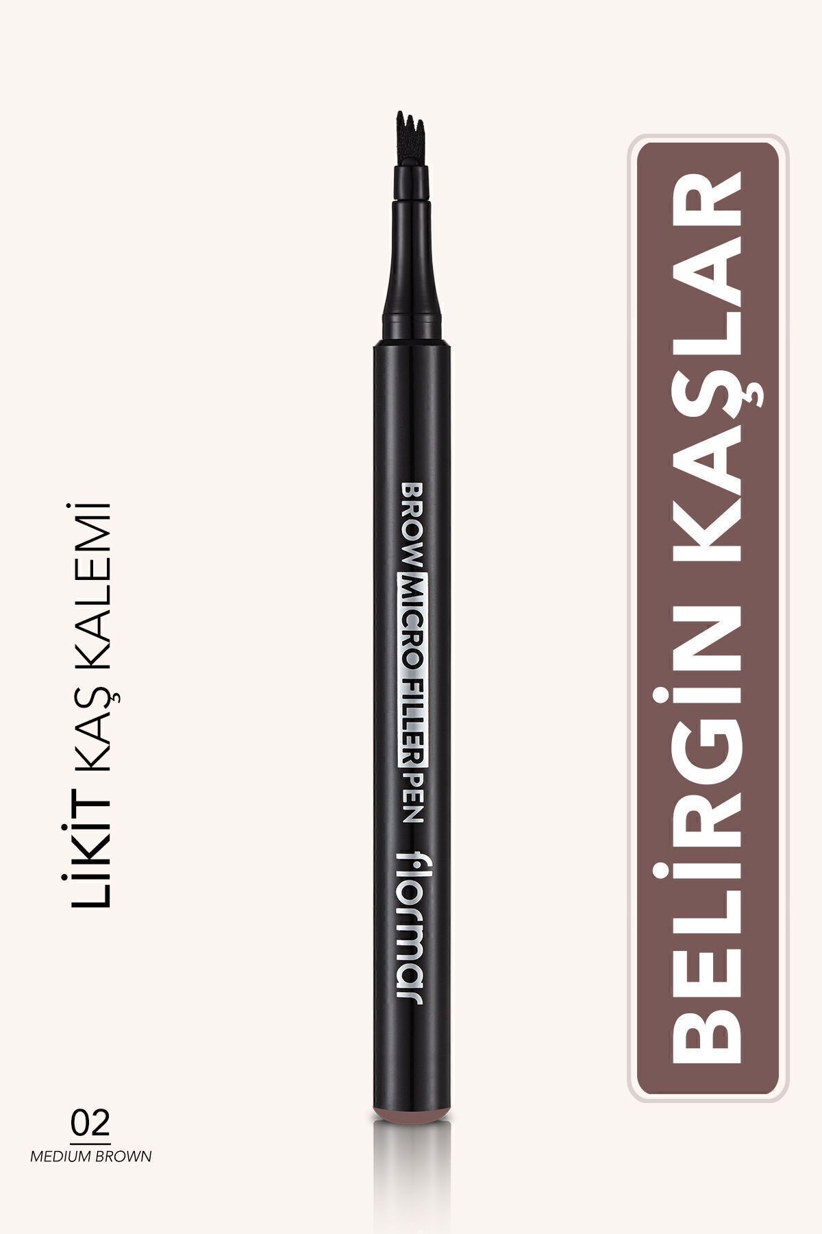Flormar Fırça Uçlu Likit Kaş Kalemi (Orta Kahve) 002, kaşlardaki seyrek noktaları ince çizgiler halinde doldurarak kusursuz bir kaş görünümü sağlar.