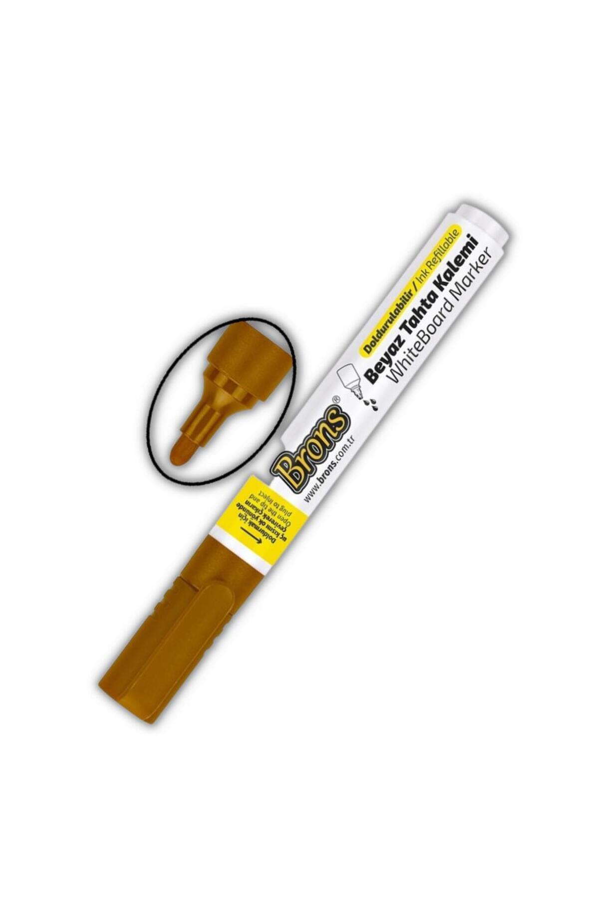 Ürün Bilgilendirmesi Ürün Adı: Brons Kahverengi Yazı Tahta Kalemi Doldurulabilir 2 Adet ve Silinebilir Mürekkep 30 ml 1 Adet Brons Yazı Tahta Kalem Seti Ürünün Ayrıntıları: - Okul ve dershane sınıflarında, toplantı ve seminer odalarında -kullanılan beyaz yazı tahtaları üzerinde yazı yazmak, - grafik çizmek ve işaretleme yapmak için geliştirilmiş beyaz yazı tahtası kalemleridir -Emaye, cam ve melamin gibi tüm gözeneksiz yüzeylerden kuru bir şekilde silinebilir.