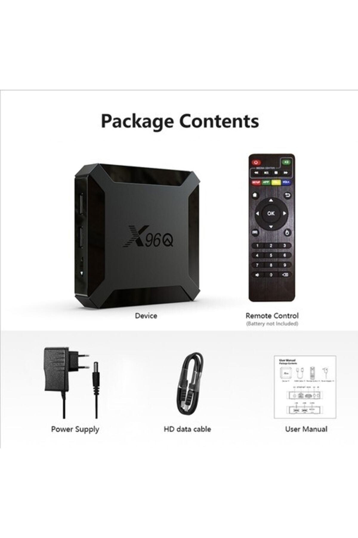 4GB / 8GB / 16GB / 32GB / 64GB TF kart destekler.Yerel medyayı oynatabilir, sabit diski, U diski destekleyebilir. Özellikleri:İşletim Sistemi: Android 10.0 CPU ? Allwinner H313 Dört Çekirdekli ARM Cortex A53 GPU ? G31 OPENGL ES3.2 Kablosuz ? IEEE 802.11 b / g / n Jack: 1 * HD, 1 * AV OUT, 2 * USB, 1 * IR Alıcı, 1 * Ethernet Arayüzü, 1 * TF KART, 1 * DC Arayüzü TF Kart Belleği: Destek 4GB / 8GB / 16GB / 32GB / 64GB Güç: DC 5V / 2A Video 4K 60 fps iye kadar video kod çözmeyi destekler Çoklu formatları destekler: - H.265 Main10L5.1 - 4K 60fps iye kadar - VP9 Profil 2 4K iya kadar 30fps - AVS2 JiZhun 10bit Profil 4K iya kadar 30fps - H.264 BP/MP/HPL4.2, 4K 30 fps iye kadar - 60 fps ide 1080p iye kadar H.263 BP - MPEG-4 SP / ASP L5, 1080p 60fps iye kadar - 60 fps ide 1080p iye kadar MPEG-2 MP / HL - 60 fps ide 1080p iye kadar MPEG-1 MP / HL - 1080p 60fps iye kadar Xvid - Sorenson Spark 1080p 60fps iye kadar - 60pps ide 1080p iye kadar VP8 - AVS / AVS + JiZhun Profil 1080p 60fps iye kadar WMV9 / VC1 SP / MP / AP, 1080p 60fps iye kadar - 45MPPS iye kadar JPEG HFIF dosya biçimi H.264 BP / MP / HP • H.264, I / P çerçevesini destekler ve yalnızca tek referans çerçevesini destekler• MJPEG / JPEG taban çizgisi • H.264 kodlama için maksimum 16 megapiksel (4096 x 4096) çözünürlük • H.264 kodlama kapasitesi: 1080p 60fps• Bağımsız olarak 1080p 60fps JPEG anlık görüntü performansı• 256kbit / s ile 100Mbit / s arasında değişen sabit bit hızı (CBR) ayarlanabilir bit hızı (VBR) bit hızı kontrol modunu destekler • İlgili sekiz bölgenin (YG) kodlanması Ses MP3, AAC, WMA, RM, FLAC, Ogg iu destekler Dahili seri dijital ses SPDIF / IEC958 giriş / çıkış ve PCM giriş / çıkış• İki DAC kanalı • 1 ses çıkış arabirimini destekler (diferansiyel LINEOUTP / N veya tek uç LINEOUTL / LINEOUTR) • Dahili ses karıştırma fonksiyonunu destekleyen bir Audio HUB • Gömülü 3 I2S / PCM (genişletilmiş ses kodeki için I2S0, BT için I2S2, dijital güç amplifikatörü için I2S3)• Sola yaslanmış, Sağa yaslanmış, Standart I2S modunu, PCM modunu ve TDM modunu destekler • I2S modu 8 kanalı ve 32 bit / 192kbit örnek hızını destekler • I2S ve TDM modları maksimum 16 kanalı ve 32 bit / 96kbit örnek hızını destekler • 16- / 20- / 24-bit giriş ve çıkışları destekleyen bir OWA OUT arayüzü • Maksimum 8 dijital PDM mikrofonu destekleyen entegre dijital mikrofon (DMIC) Özellikler:Model: X96Q Siyah renk DLNA işlevini destekleyin 2.4G kablosuz fare / klavye desteği Bellek: 1GB + 8GB, 2GB + 16GB (isteğe bağlı) Uzaktan kumanda pil bilgisi: 2 * AAA (dahil değildir) Paket Boyutu: 17 * 12 * 6cm / 6.69 * 4.72 * 2.36in Paket Ağırlığı: 350g / 12.35oz Paket İçeriği: 1 * TV Kutusu 1 * Güç Adaptörü 1 * IR Uzaktan Kumanda 1 * HD Kablo 1 * Kullanım Kılavuzu
