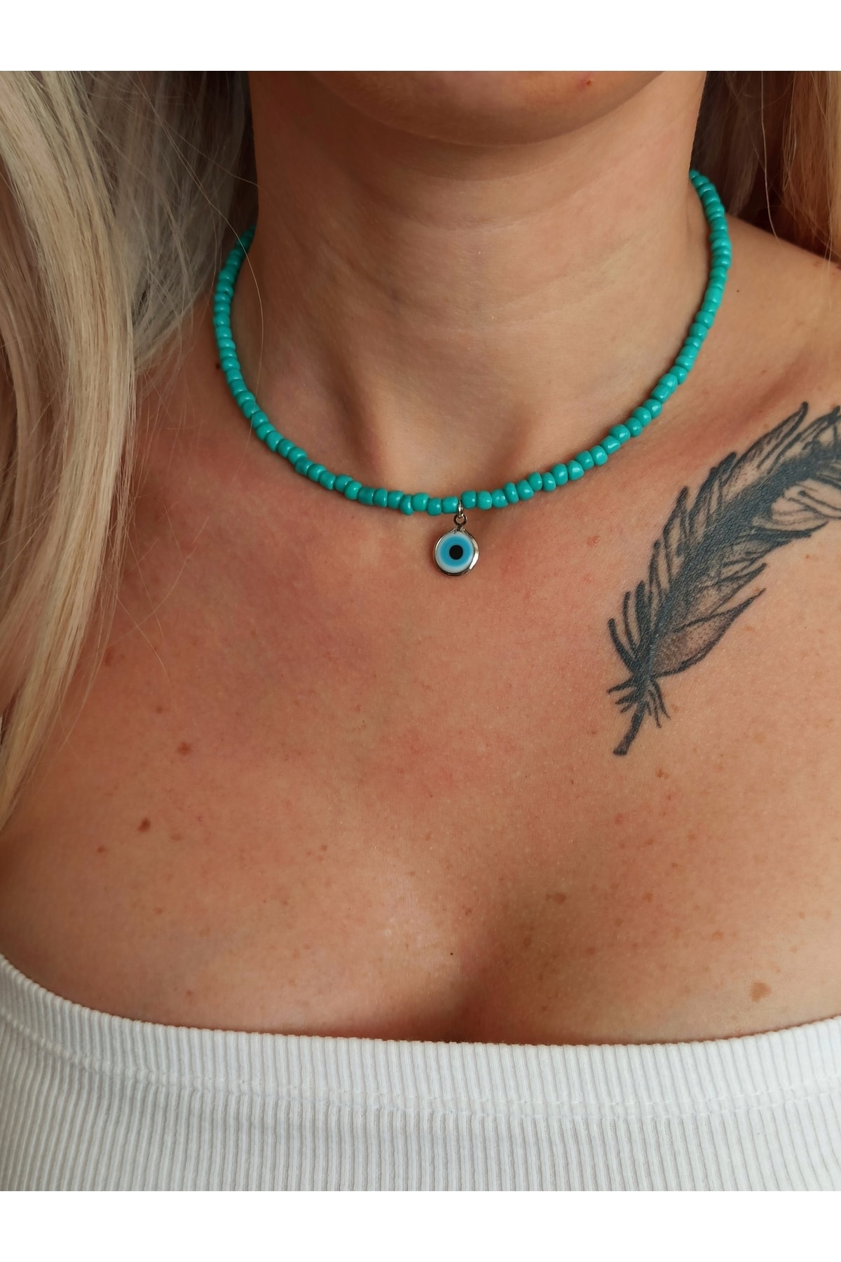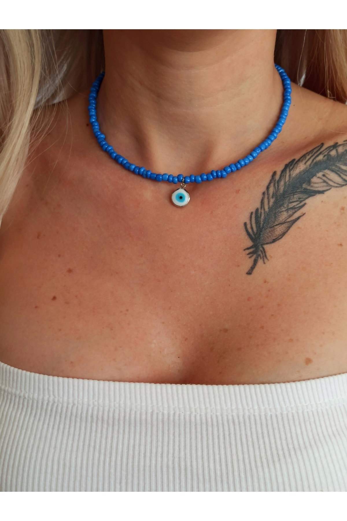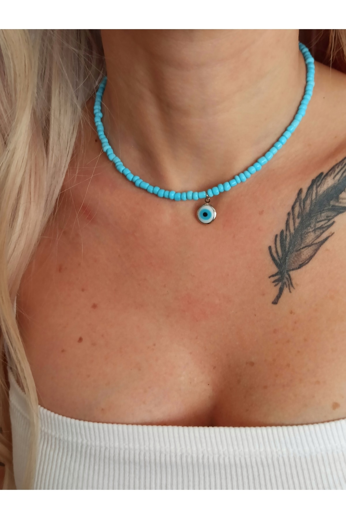 - Göz alıcı açık mavi renkli boncuklarla süslenmiş, gençlerin enerjisini ve stilini yansıtan bir aksesuar