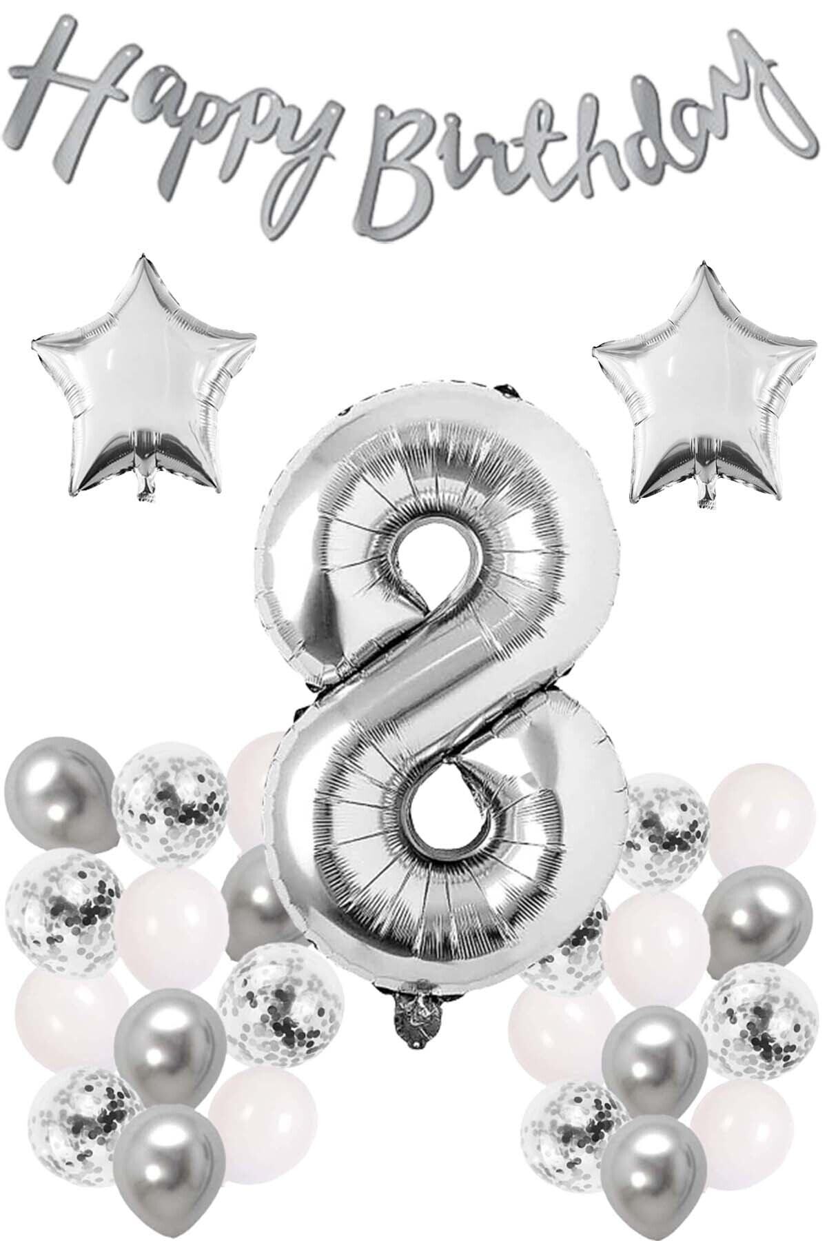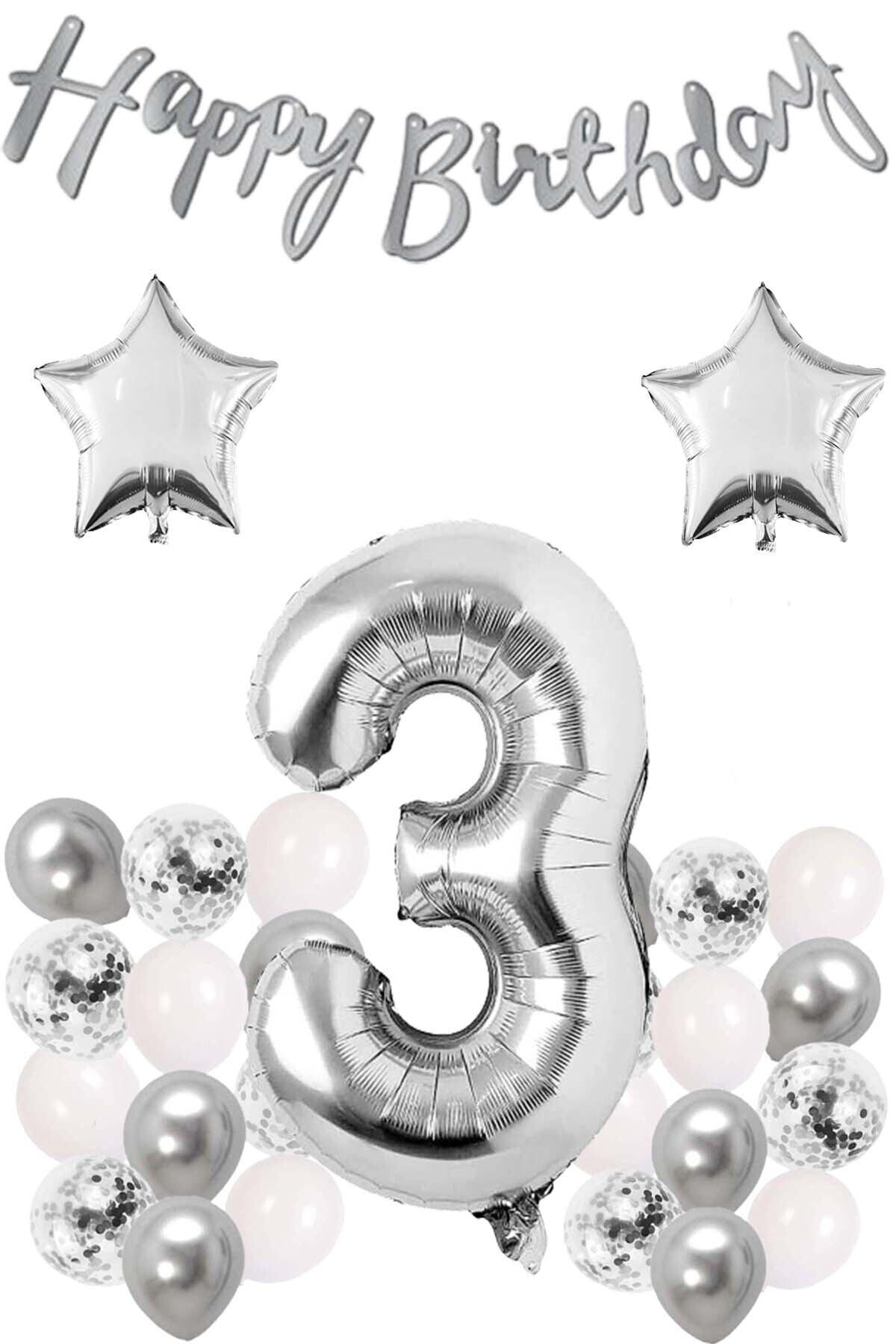 Beyaz Gümüş ve Konfetili Balon, Rakam ve Yıldız Folyo Balon ve Kaligrafi Happy Birthday Gümüş Banner Parti konsepti arayanlar için en özel setler Patladı Gitti'de. Gold konseptli parti yapmak isteyenler bu seti çok beğenecek. Paket İçeriği: Başlık ve görselde yer alan Gümüş renkli 34" Inc 76 cm rakam folyo balon. (1 adet) Yıldız gümüş folyo balon. (2 adet) Ebat: 18 inç / 45 cm Happy Birthday yazılı kaligrafi gümüş banner. (1 adet) 12 inch beyaz gümüş ve konfetili karışık balon. (20 Adet)