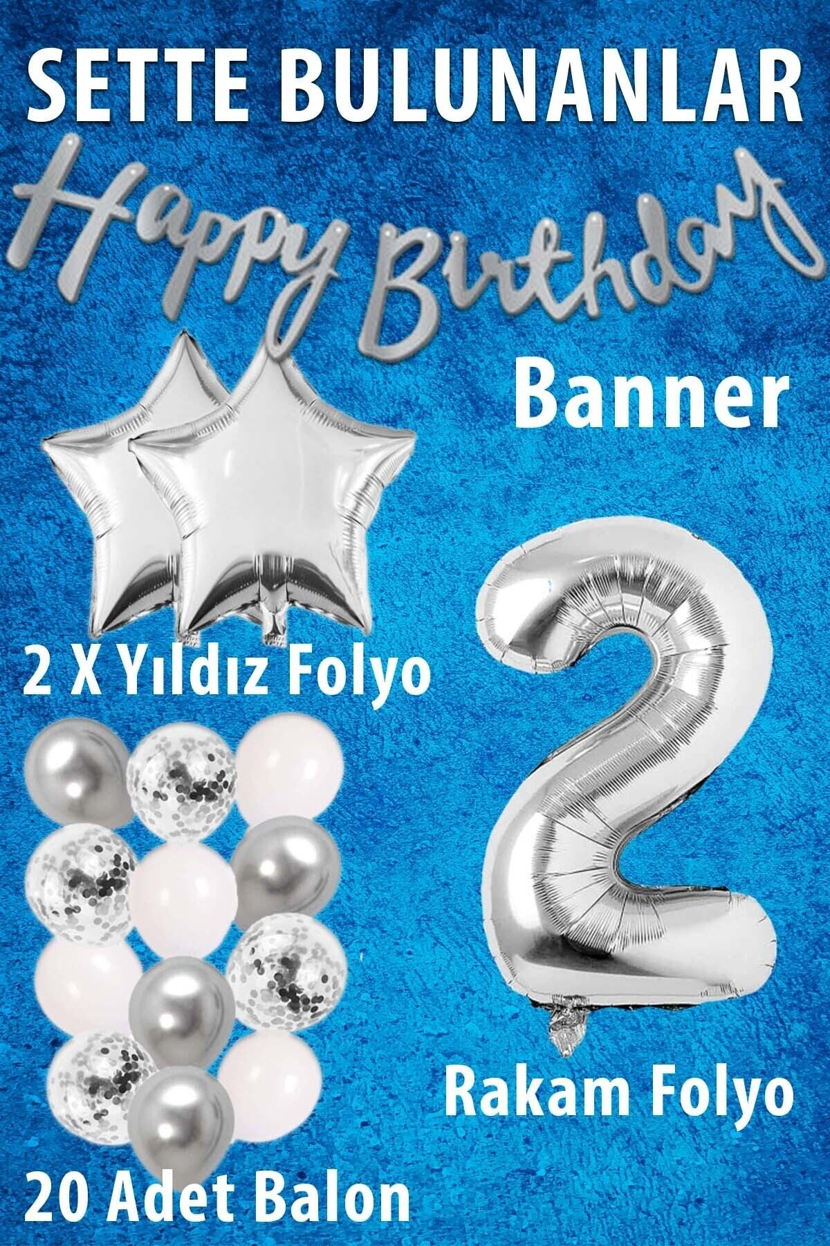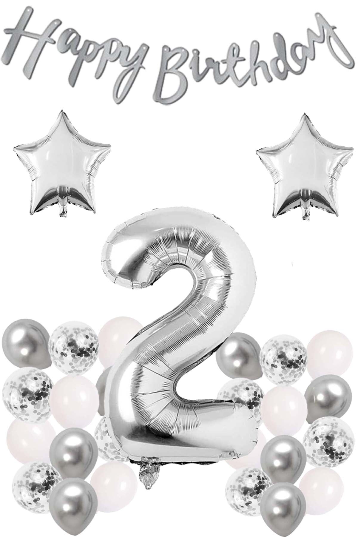 Gümüş Konsept 2 Yaş Doğum Günü Parti Kutlama Seti