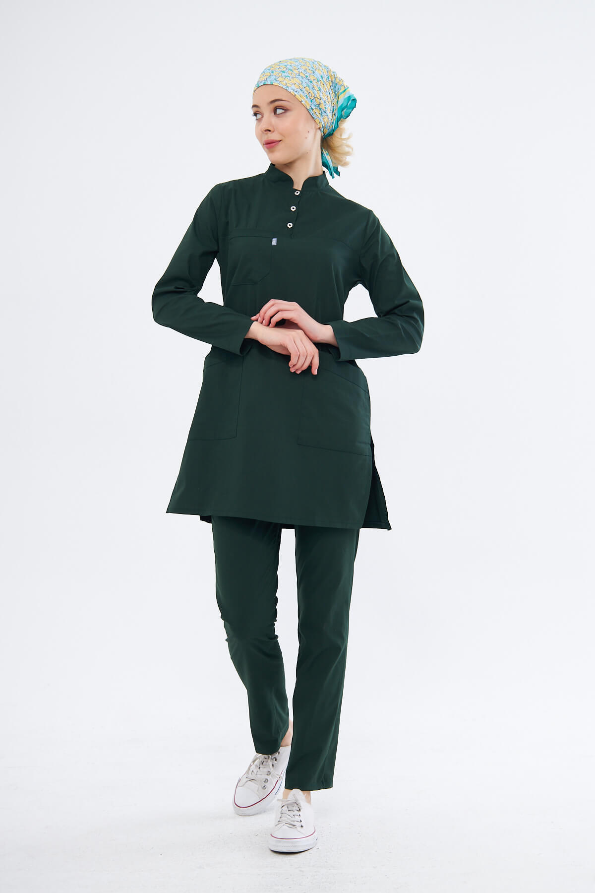 Kaliteli, şık ve konforlu bir medikal üniforma arıyorsanız, Tesettür Likralı Kadın Medikal Üniforma Doktor ve Hemşire Forması Scrubs Cerrahi Takım tam aradığınız ürün olabilir! Kumaş Türü: Özel olarak ürettirdiğimiz kumaşlarımız likralı, esnek ve konforlu, ayrıca viskoz teknolojisi sayesinde kırışmayan ve terletmeyen bir yapıda tasarlanmıştır.