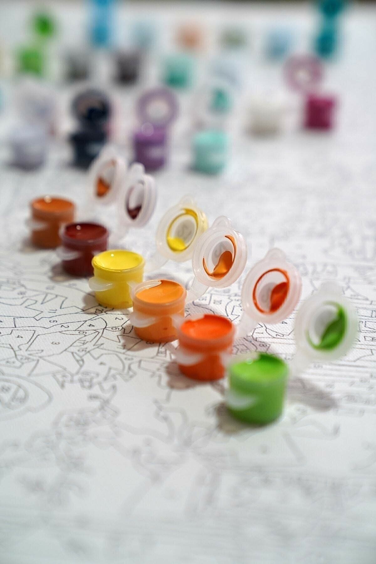 Tuval üzerinde numaralandırılmış olan sayıya göre boya setinden aynı sayı seçilir ve boyama yapılır.