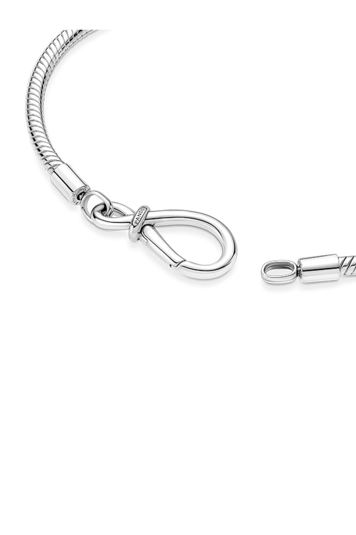 Anne ve çocuk arasındaki bağdan ilham alan asimetrik sonsuzluk düğümü, bu 925 ayar gümüş yılan zincirli bilekliğin klipsi olarak görev yapıyor. İki yükseltilmiş ayırıcı, charm'larla kişiselleştirilmeye hazır bölümler oluşturuyor.