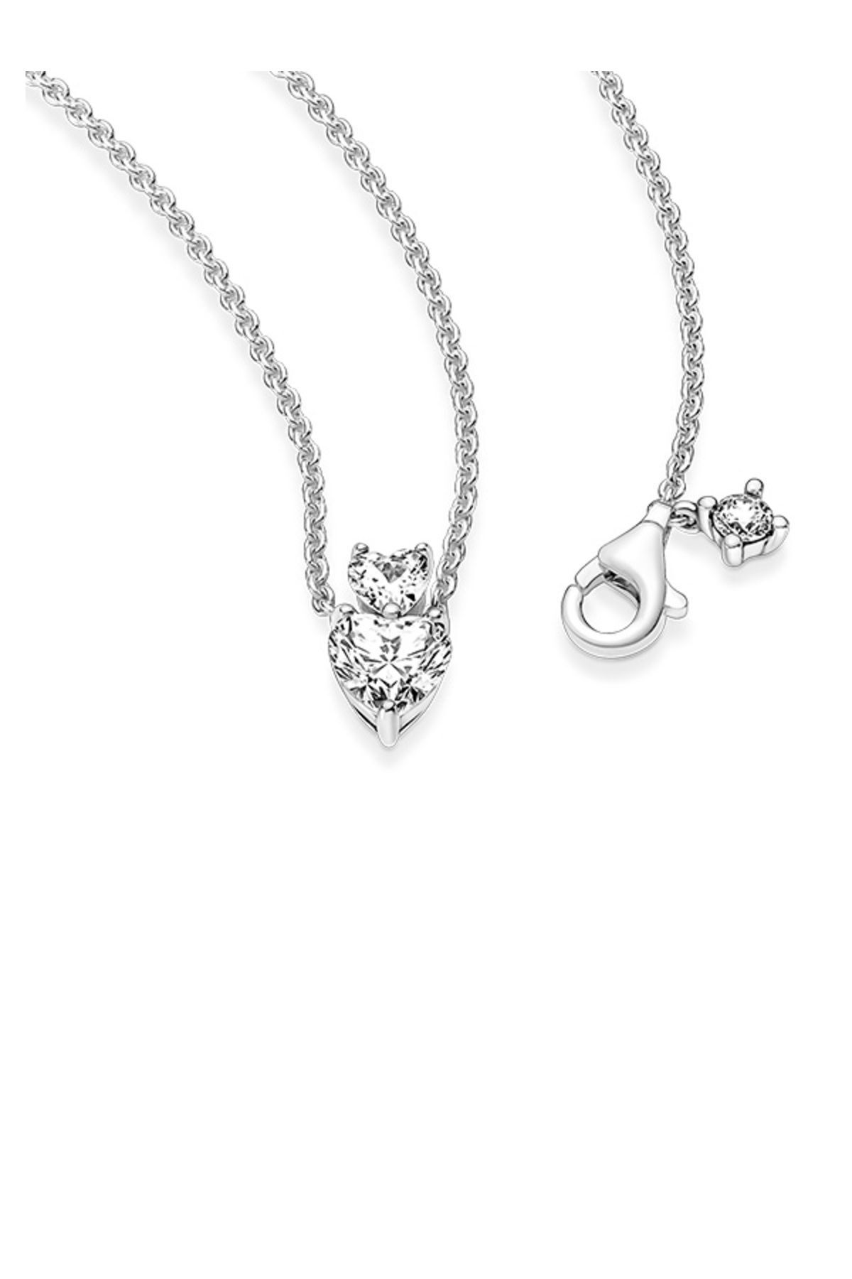 İki kalp bir arada atıyor. Bu ışıltılı kolye ucunda iki kalp şekilli taş bulunuyor