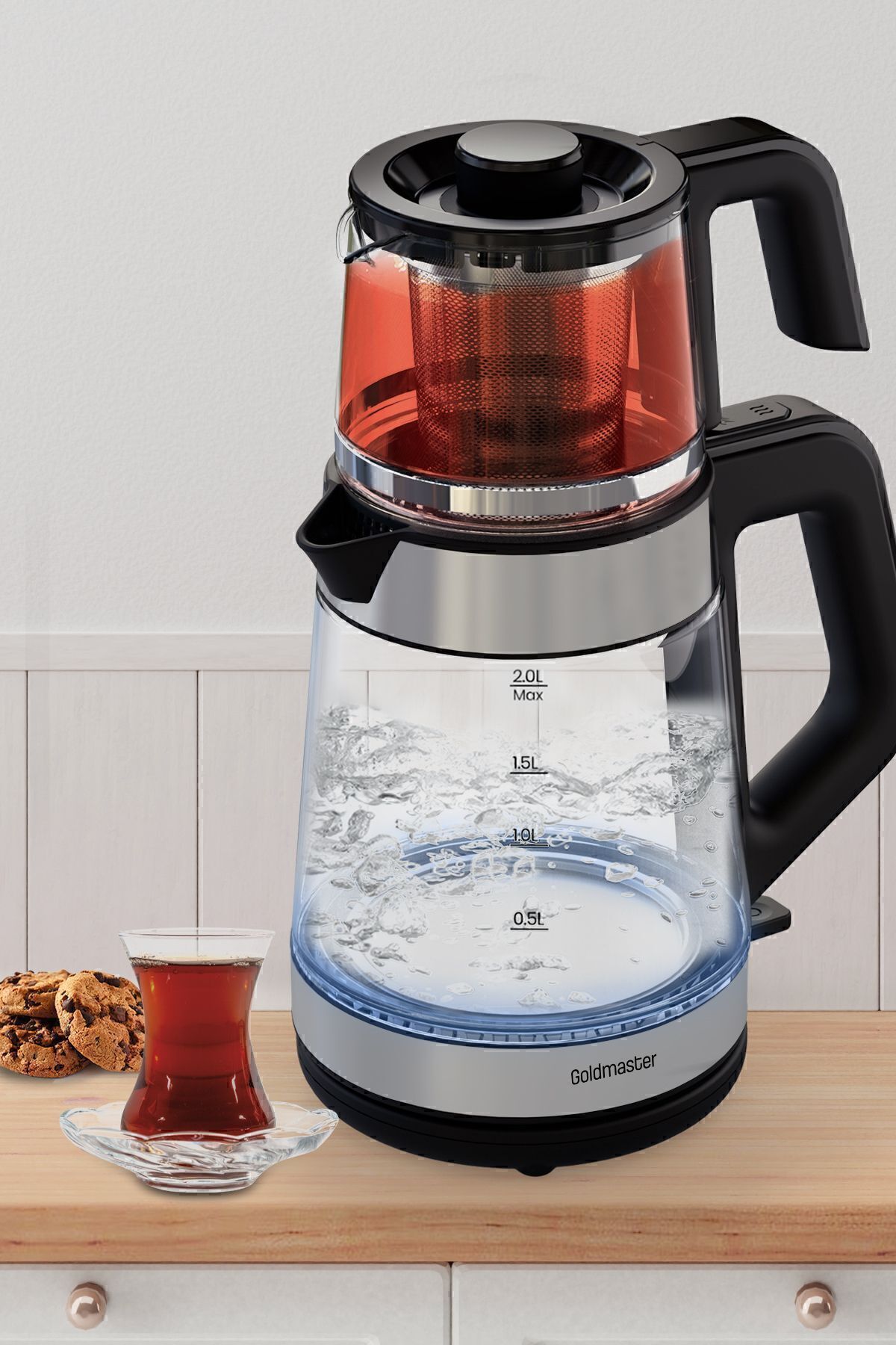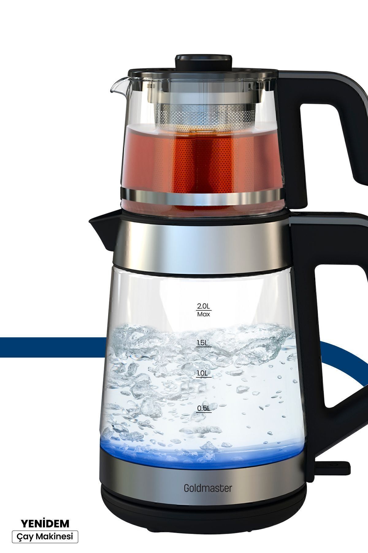 Yenidem İnox Geniş Hazneli Demlikli Alman Schott Cam Çay Makinesi ve Led Işıklı Su Isıtıcısı Schott Cam Demlik Ve Schott Cam Gövde
