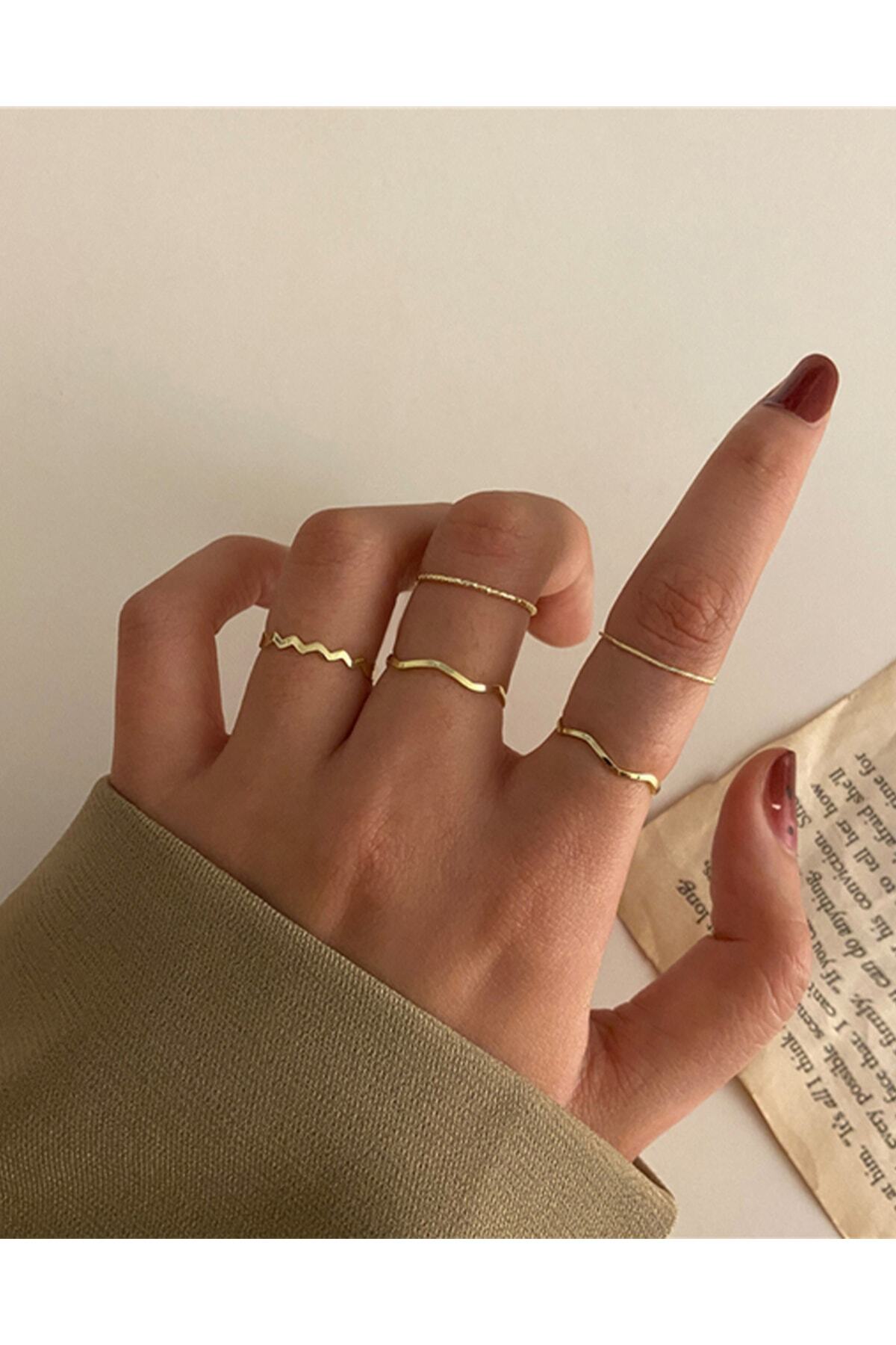 Beş farklı yüzükten oluşan set, farklı kombinasyonlarla kişisel tarzınızı yansıtmanız için çeşitli seçenekler sunar