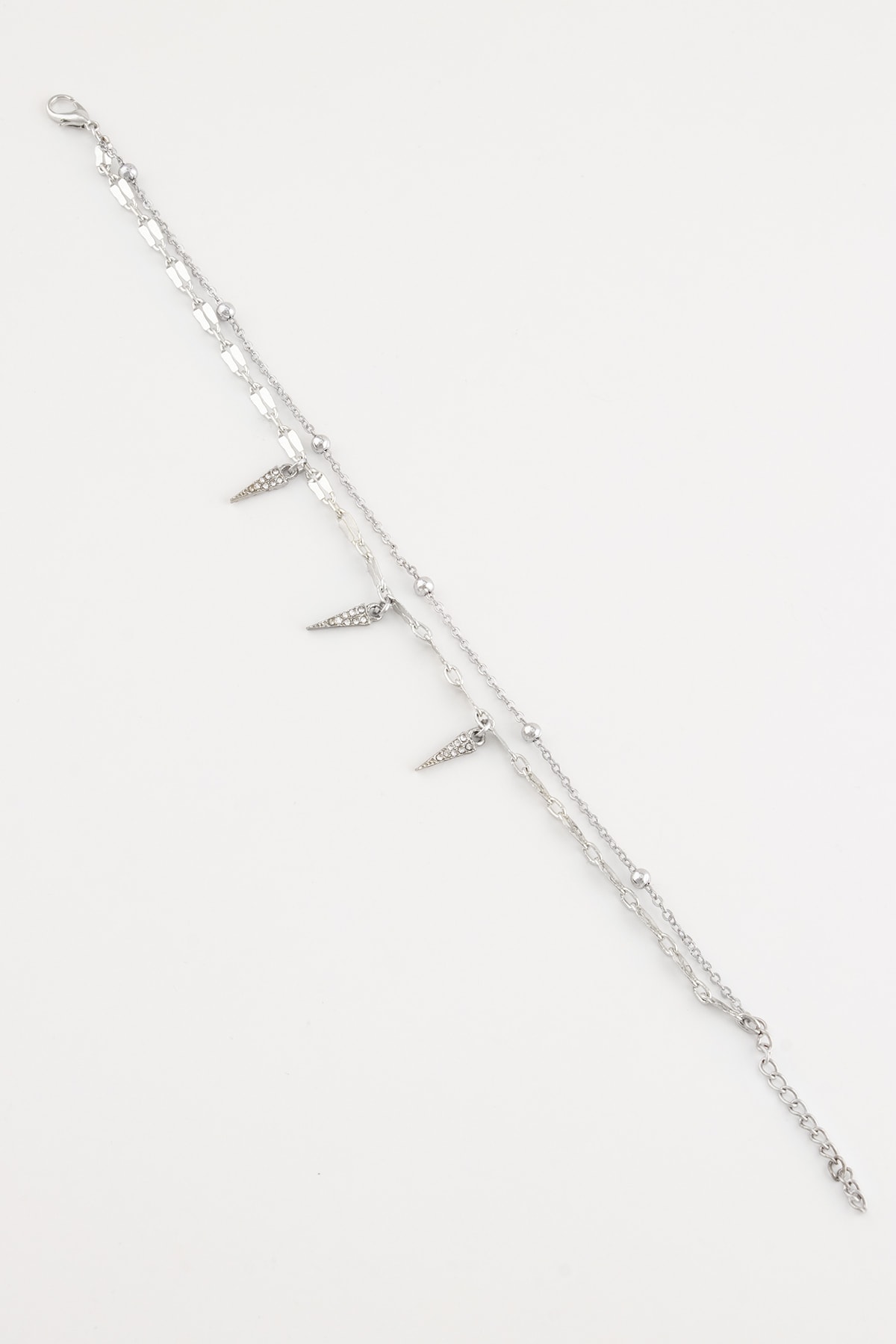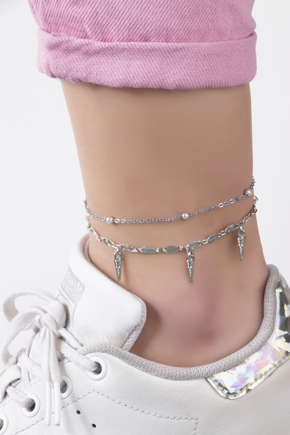Zirkon taş detaylarıyla süslenmiş, göz alıcı bir görünüm sunan üçgen figürlü kombin halhal