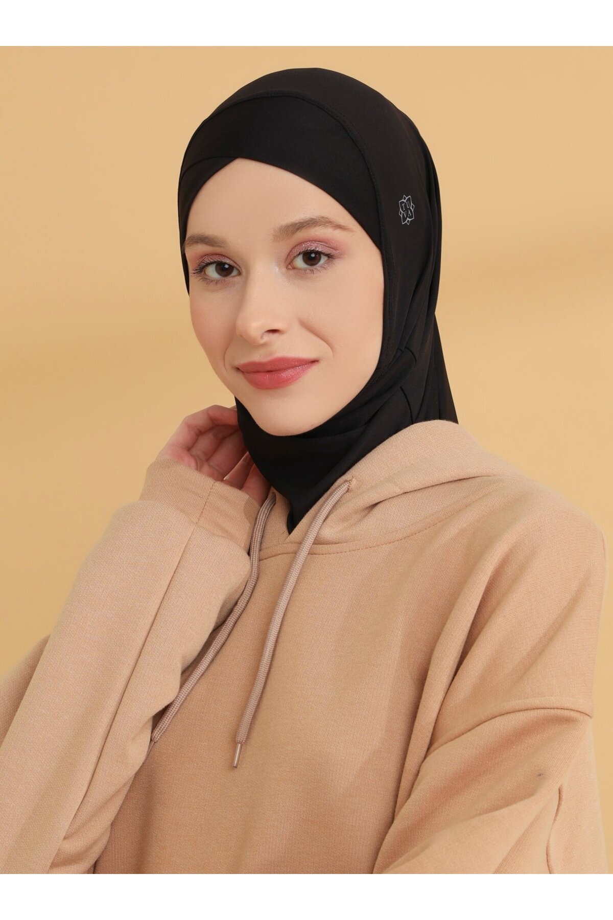 Çapraz Hijab Spor Bone - Siyah - Tuva Kumaş Bilgisi: %95 Polyester, %5 Elastan Resimdeki ürünün ölçüleri: Tip: Standart