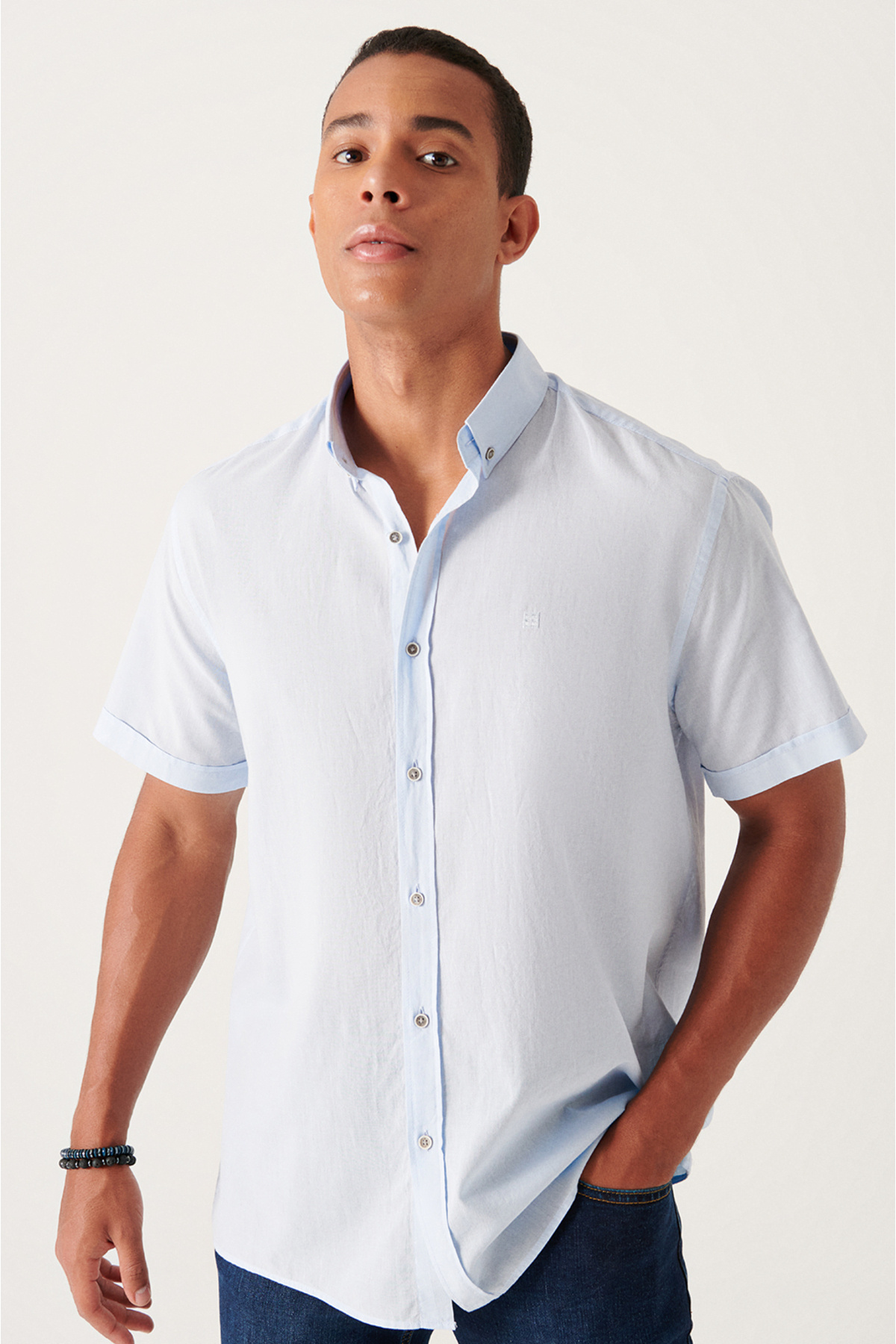 Kısa Kol Düğmeli Yaka, Regular fit Standart kesim, Vual Kumaş,%100 Pamuk, İnce, Hafif, Serin Tutan Gömlek