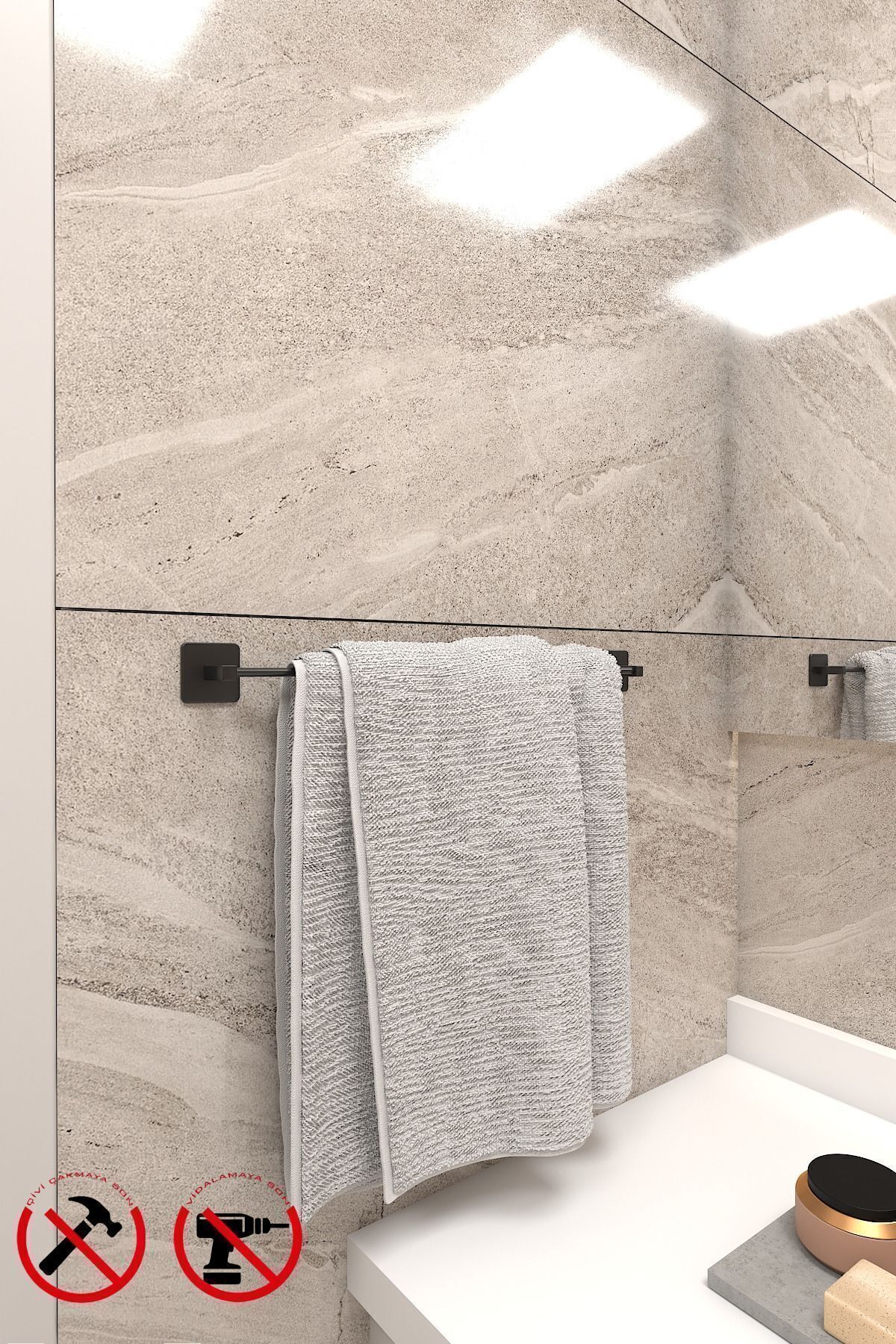 Yapışkanlı Siyah Kare Uzun Havluluk Havlu Askısı 40 cmı Ürün özellikleri
