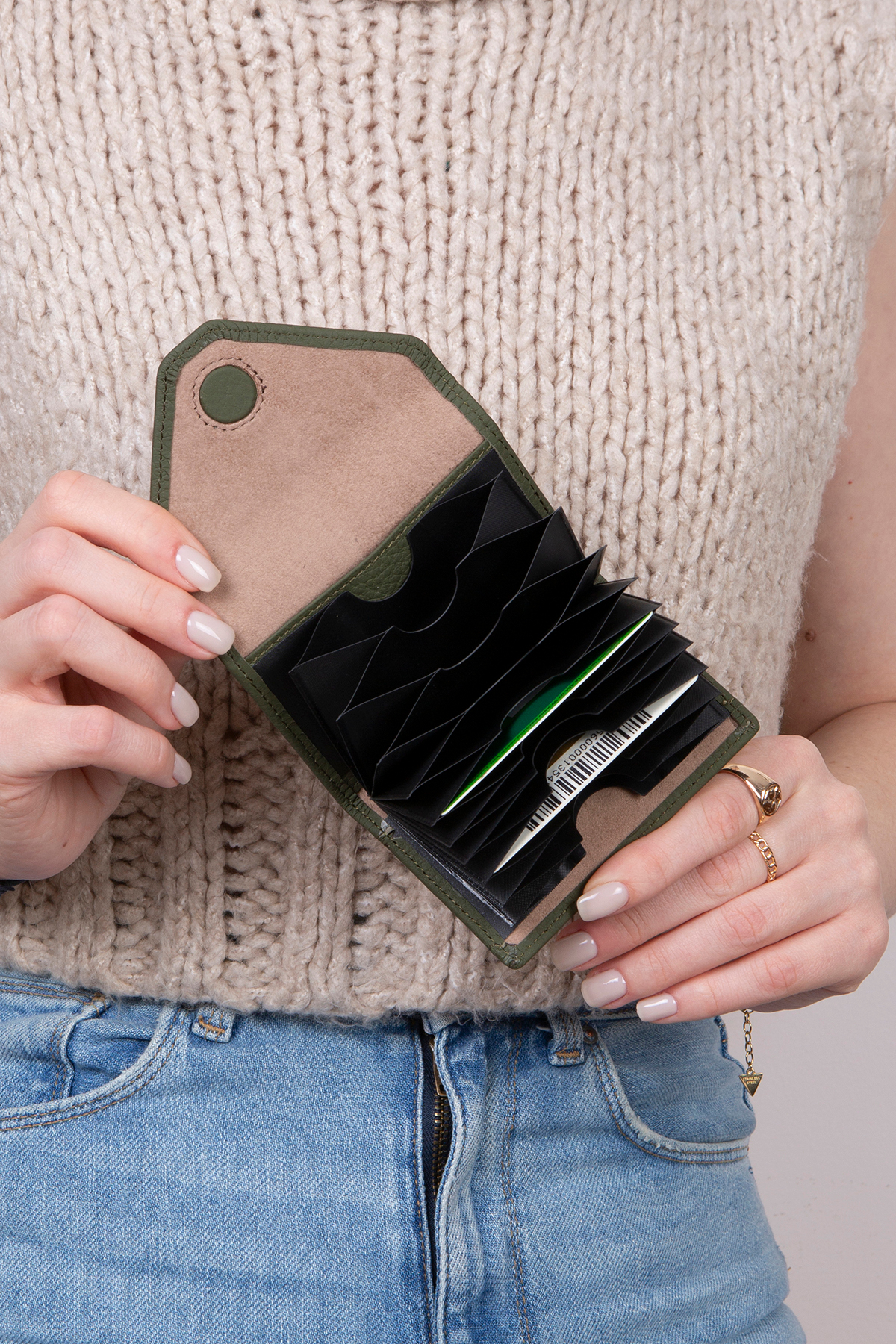 Yatay formu, kartlarınızı ve nakit paranızı düzenli bir şekilde saklamanız için pratik bir çözüm sağlar