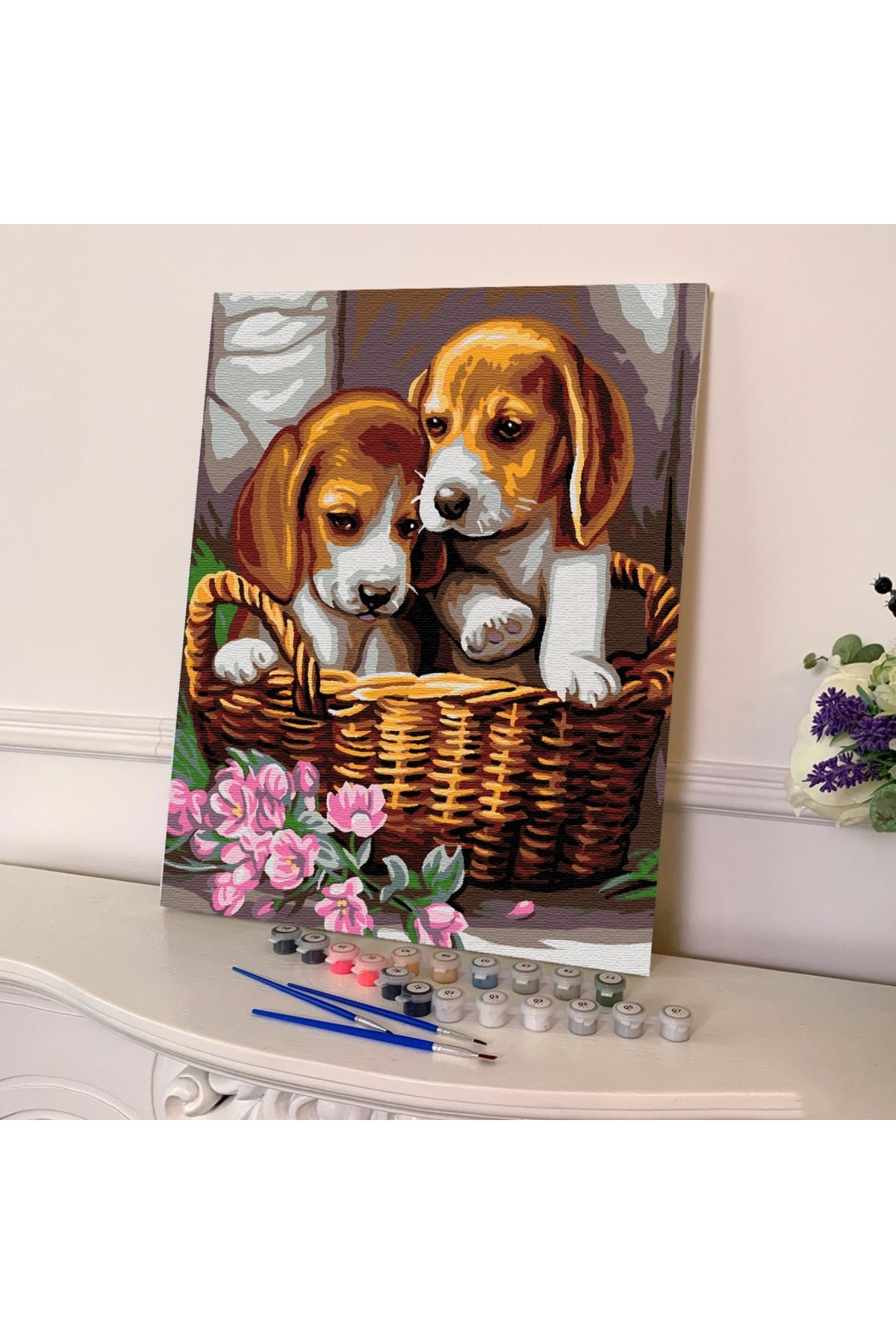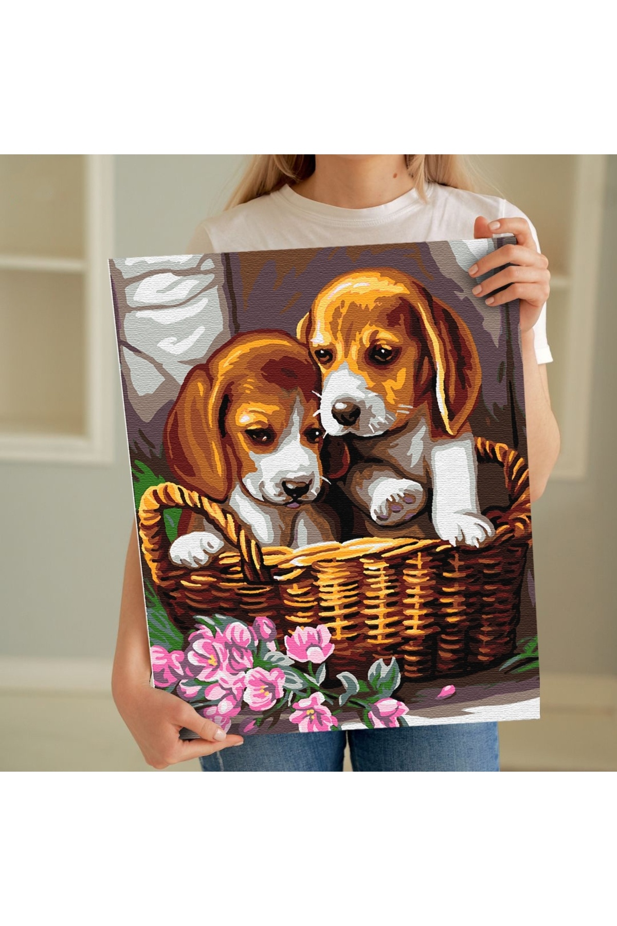 Sayılarla Boyama Seti 40 x 50 cm Tuval Şasesine Gerili Yavru Köpekler Sayılarla Boyama Hobi Seti 40x50cm Paket İçeriği:
