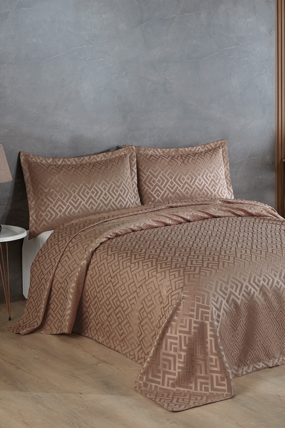 Estila Jakarlı Şönil Çift Kişilik Yatak Örtüsü (koyu Kahve)