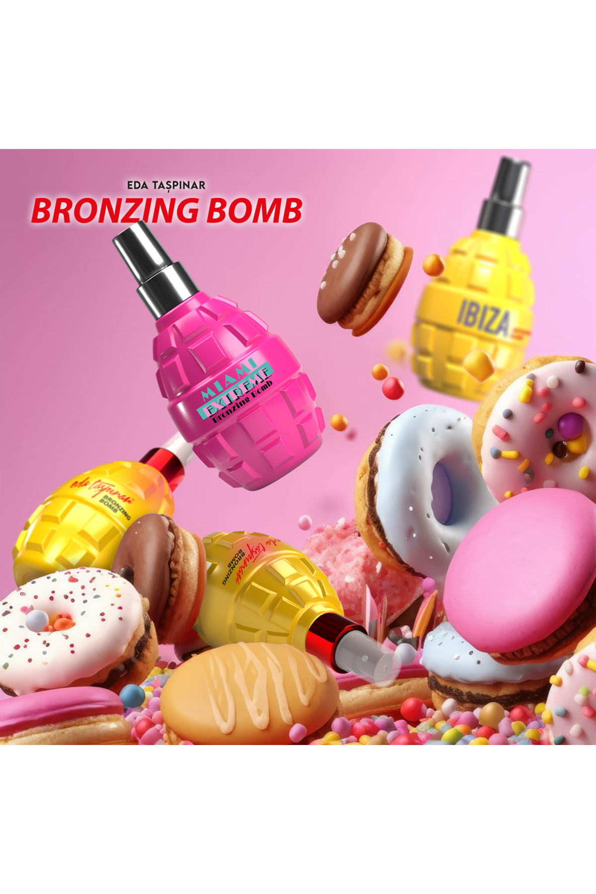 Merhaba bronzluk aşığı, Eda Taşpınar Bomb Çetesinin en çılgın üyesi Eda Taşpınar Miami Extreme ruhunu aynı zamanda “Sihirli Şehir” olarak bilinen ve tüm sene güneşli olan Miami’den aldı. Tasarımın pembe rengi heyecanlı ve baştan çıkaran Latin Amerikan, Karayip ruhunu, mavi renk ise uçsuz bucaksız Ocean Drive ı temsil ediyor. Miami Extreme, Karayip yerlilerinin egzotik ağaçlardan elde ettiği ve bronzlaşmayı hızlandıran yüksek seviyede Roucou Oil içerir - Orijinal Bronzing Bomb dan farkı yüksek seviyede Roucou Oil içermesidir. Bu nedenle koyu tenli, profesyonel bronzluk aşıkları için ideal bir bebek. Eda Taşpınar Miami Extreme ile sen de güneşi hapset, büyüle herkesi. !!! Dikkat Miami Bronzluğu içerir !!!