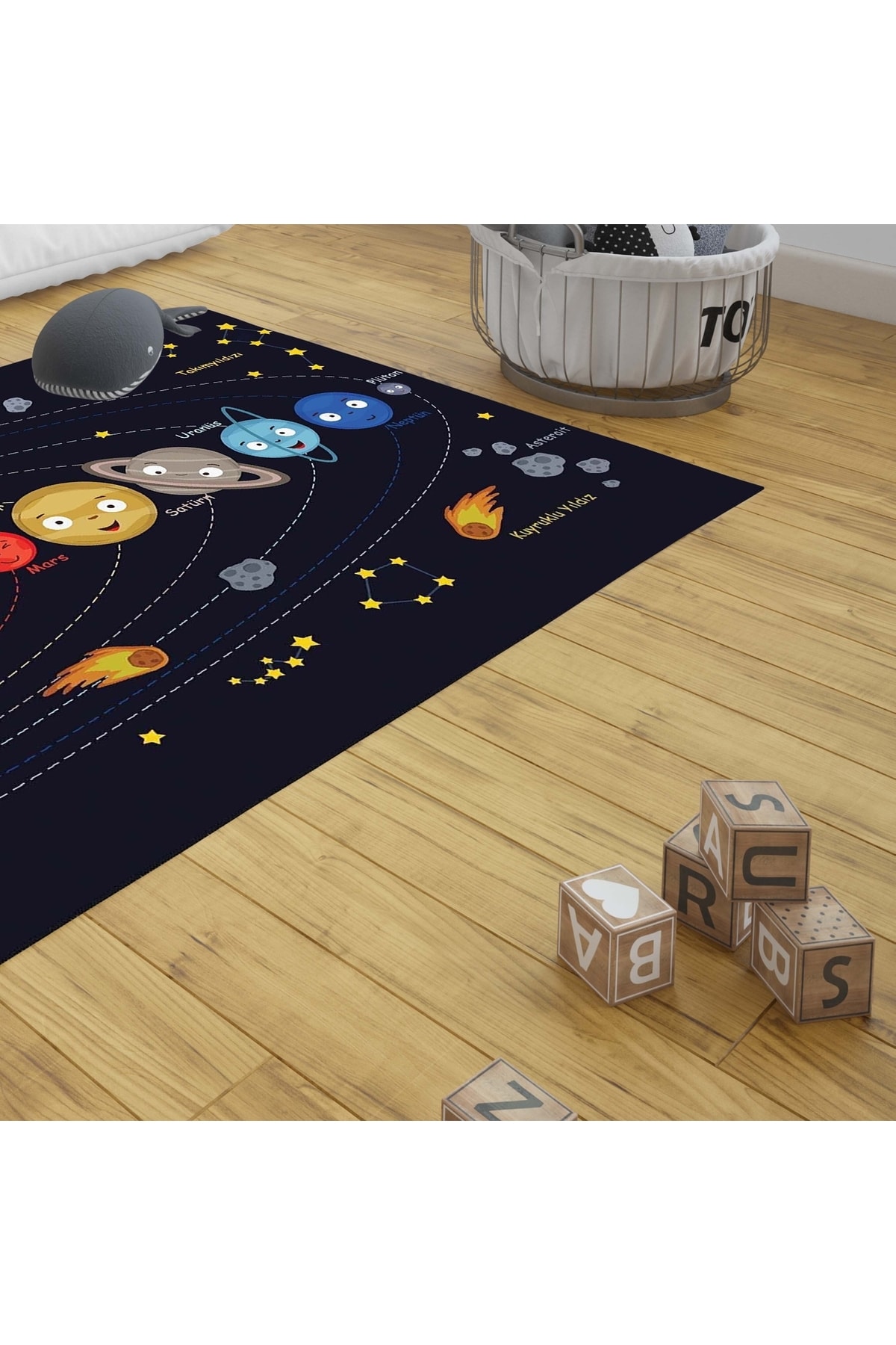 Dijital Baskılı Kaymaz Yıkanabilir Eğitici Gezegen Desenli Çocuk Odası Halısı-d9090
