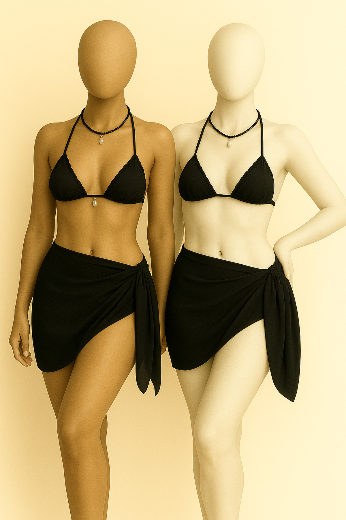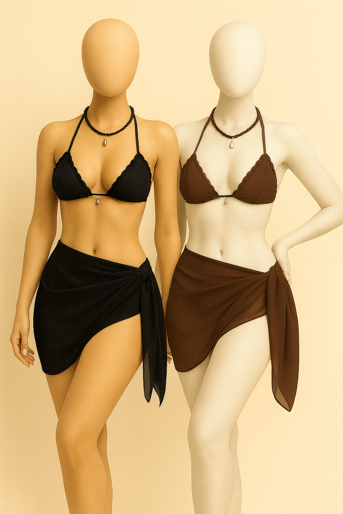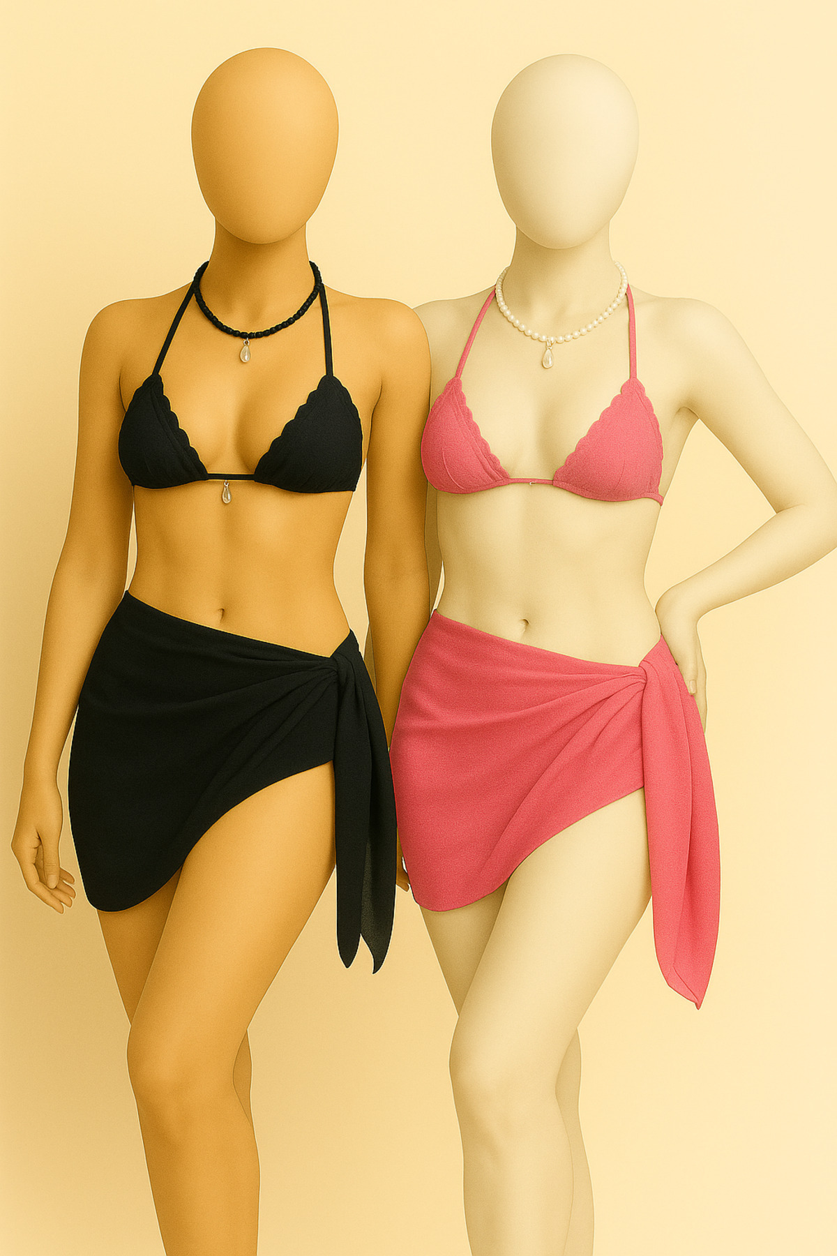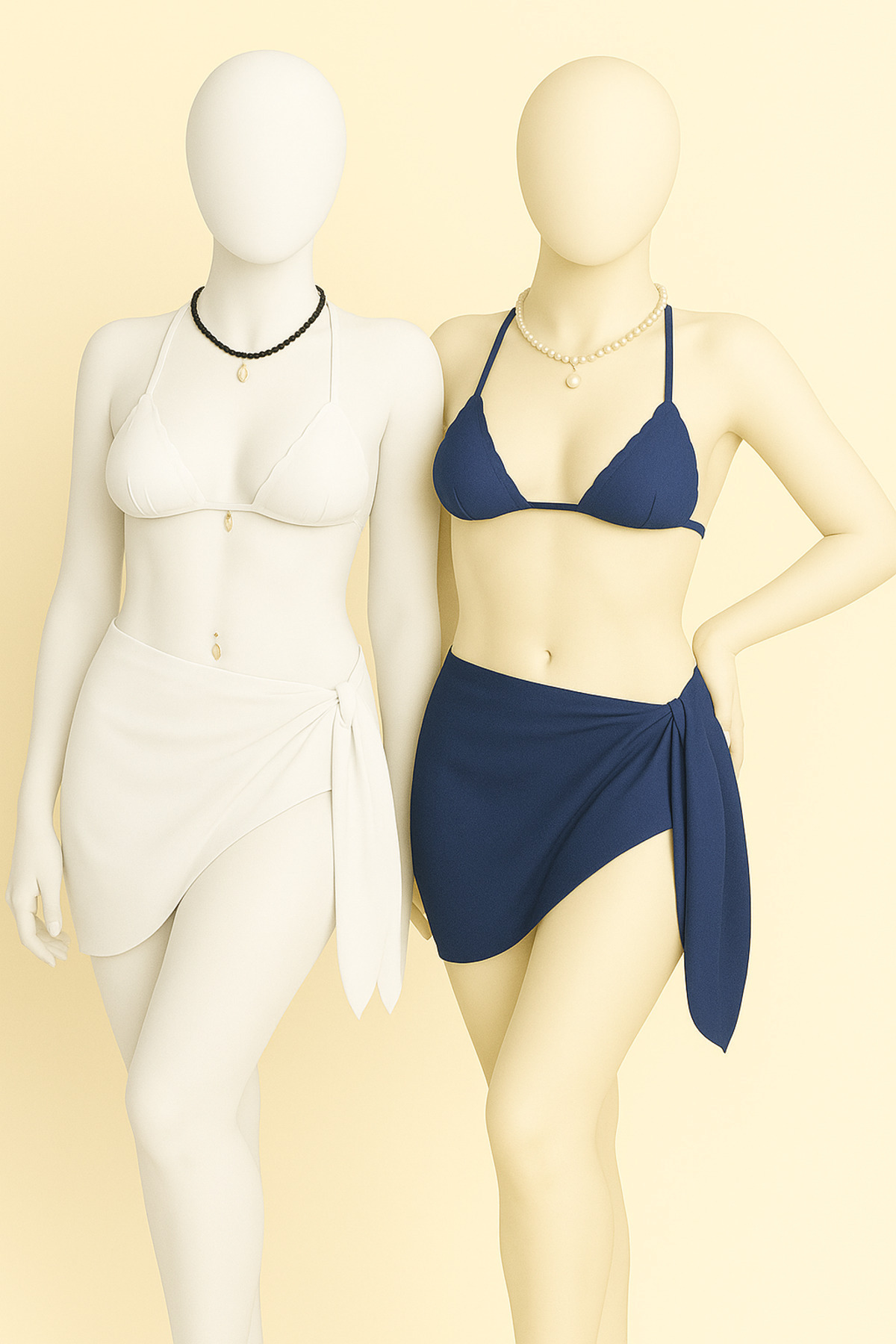 Fular detayları ile zenginleştirilmiş tasarım, pareoya modern ve estetik bir dokunuş katar