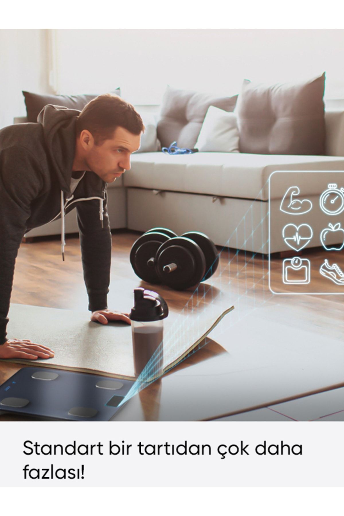 Vücut su oranı ölçümü özelliği sayesinde, su alımınızı takip ederek sağlıklı bir yaşam tarzını destekler