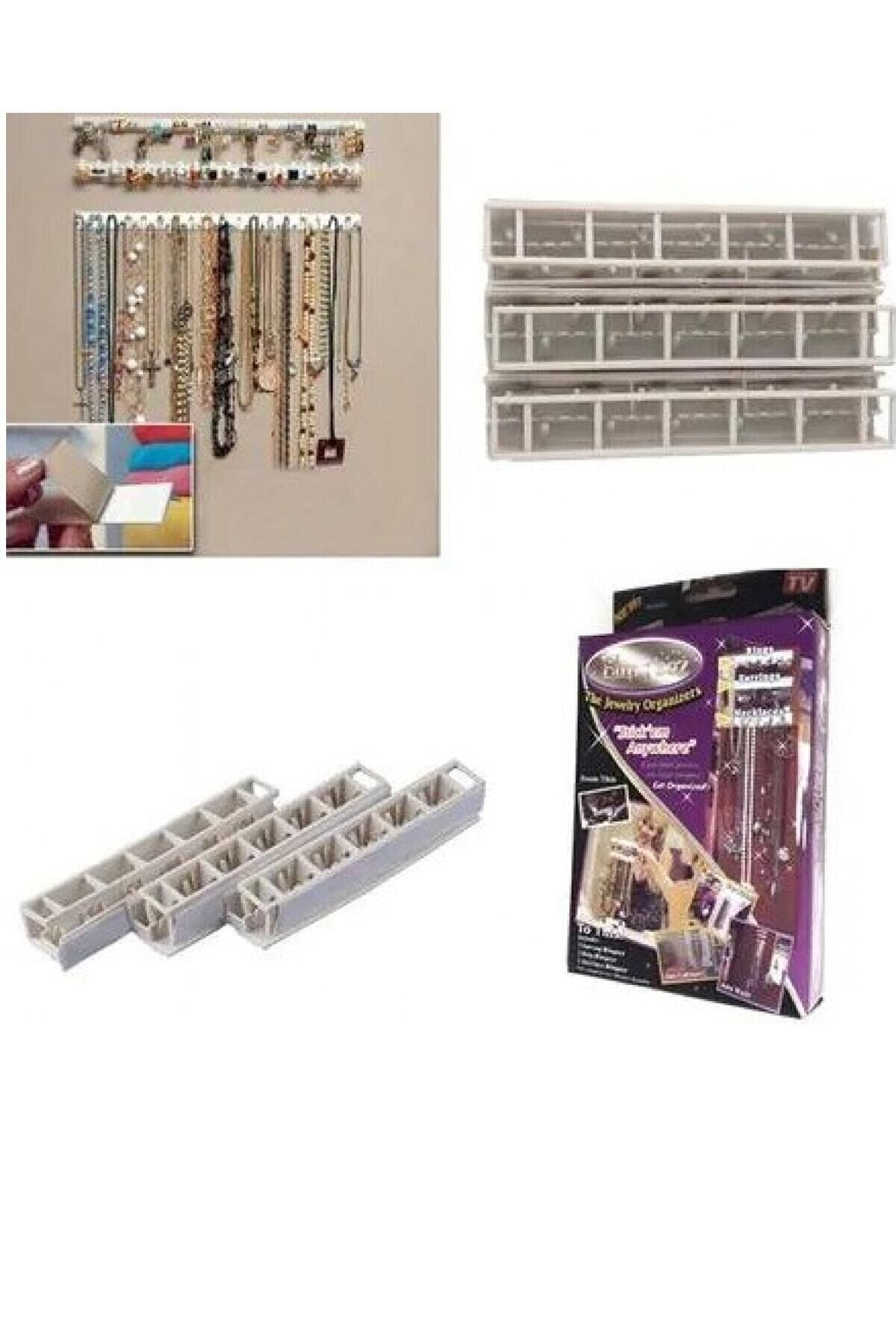 Bling Ezz Takı Ve Aksesuar Organizer Askısı Ürün Açıklaması Takı ve aksesuarlar için birçok kutu ve standlar vardır fakat bir türlü düzen sağlamaz. İstediğiniz küpeyi, yüzüğü kutunun içinde arar dururuz. Kolye zincirleri ve bileklikler birbirine girmiş, karışmış durumda çözmeye çalışırız. Bling Eez takı ve aksesuarlarınız zarar görmesin diye tasarlanmış harika bir askı organizer! Basit kurulumu sayesinde montaj gerekmez, dilediğiniz yere yapıştırın ve kullanın! Dolap kapaklarınıza, aynanızın yanına, giyinme odanıza, banyonuza, dilediğiniz yere yapıştırın ve kullanın. Artık karışık takı ve aksesuar görünümünden kurtulun, kullanmak istediğiniz takılarınızı rahatlıkla seçip takın. 200'e yakın küpe, kolye ve daha bir çok aksesuarınız için ideal bir ürün. Ürün Ölçüleri: 15 cm x 3 cm