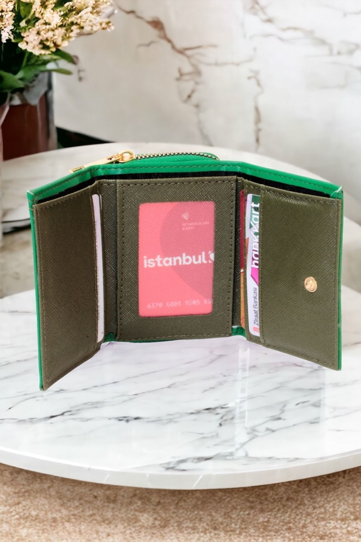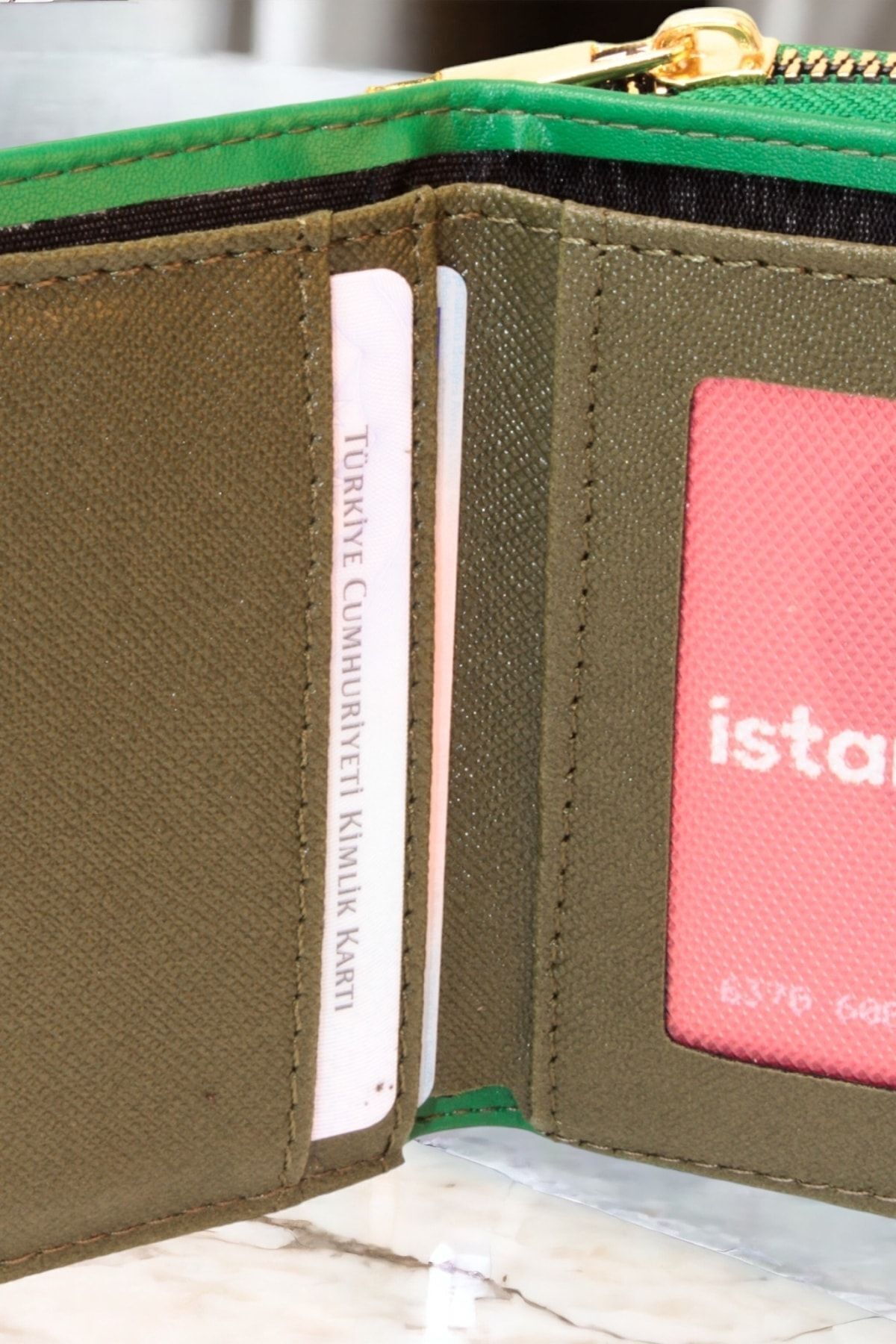 Tüm eşyalarınızı cüzdanın içine sabitlemek için fermuarlı bir kapakla birlikte gelir.