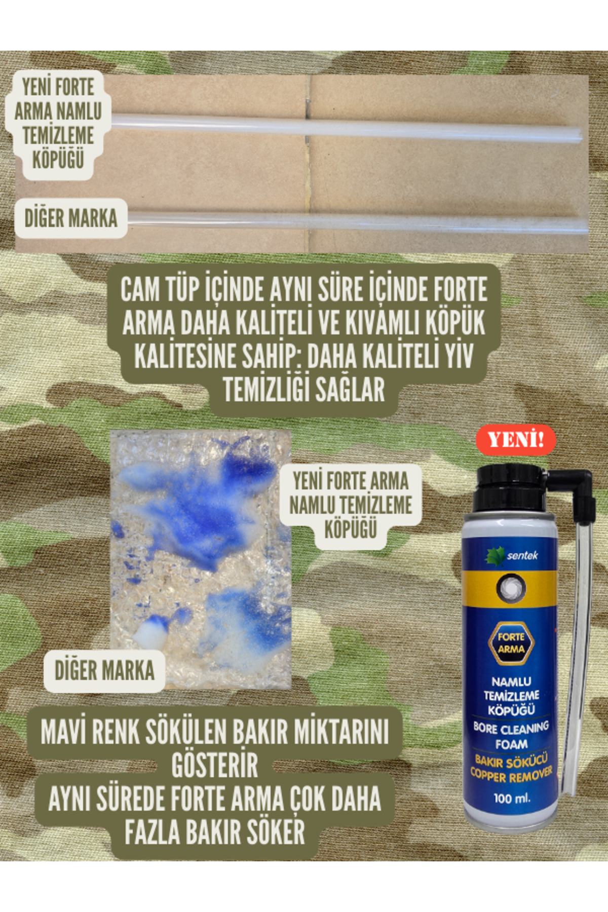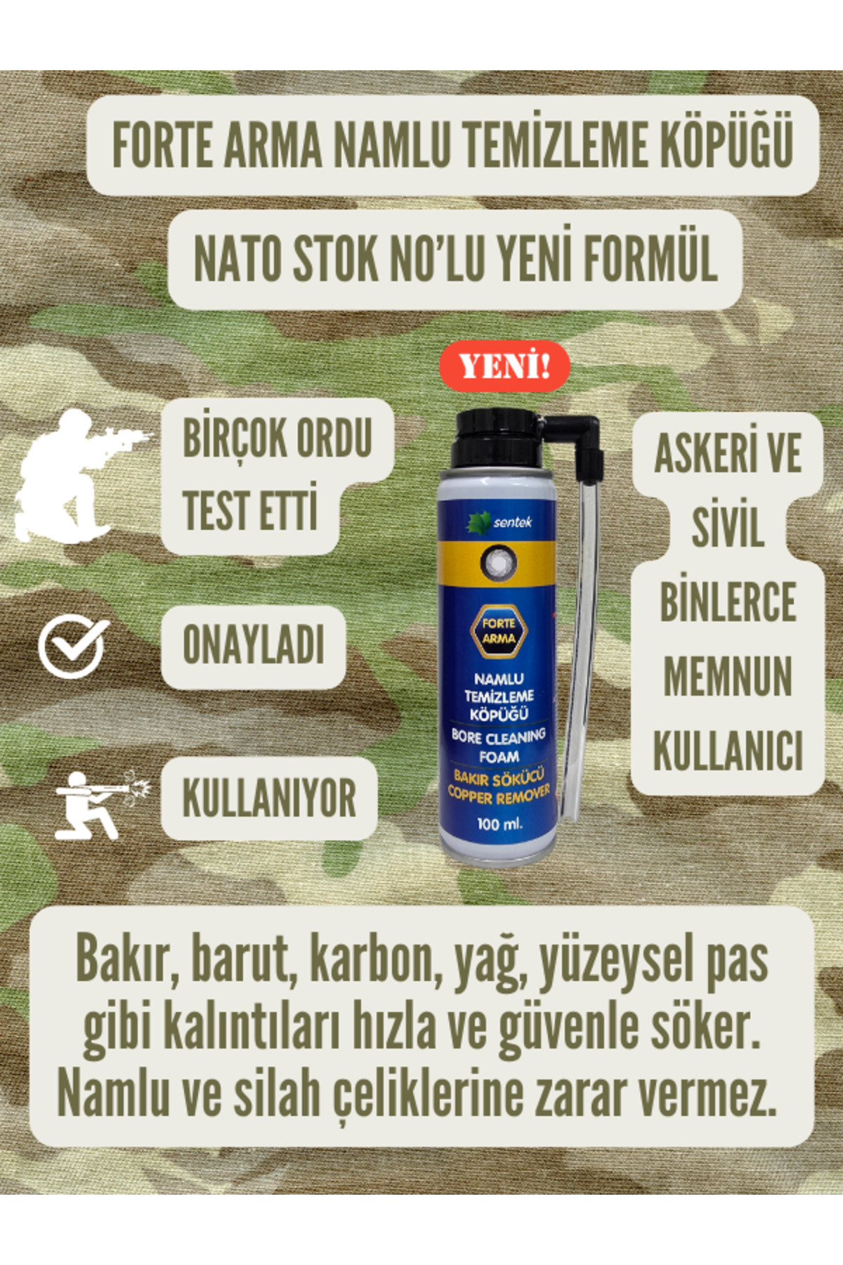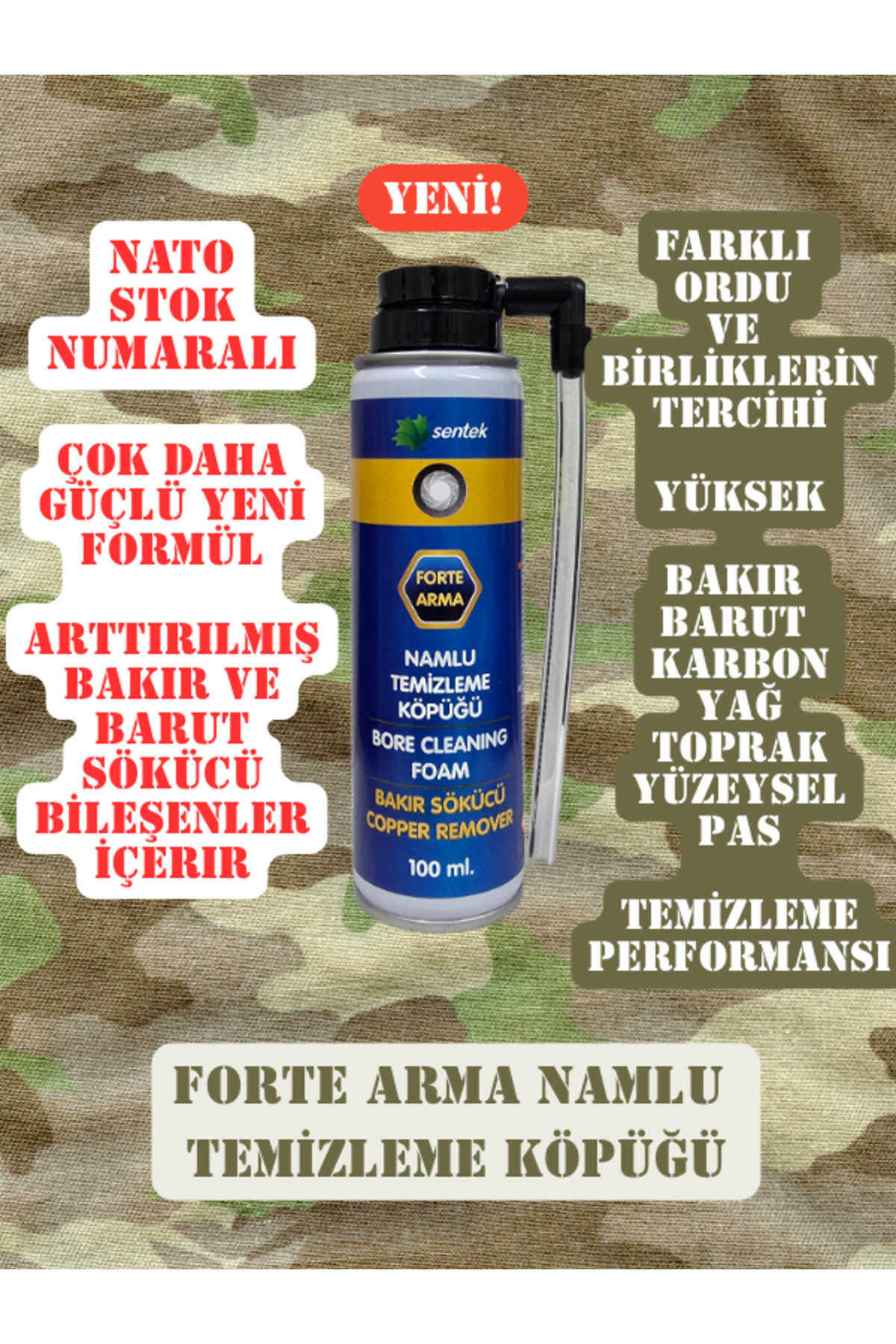 Forte arma namlu temizleme köpüğü, 100ml Nato stok numaralı yeni ve güçlü bakır, barut, yüzeysel pas, yağ, toprak gibi kalıntıları temizleme etkili formül Ürün hakkında: Yeni forte arma namlu temizleme köpüğü ile namlu temizliğinde askeri standartlarda performansı keşfedin.