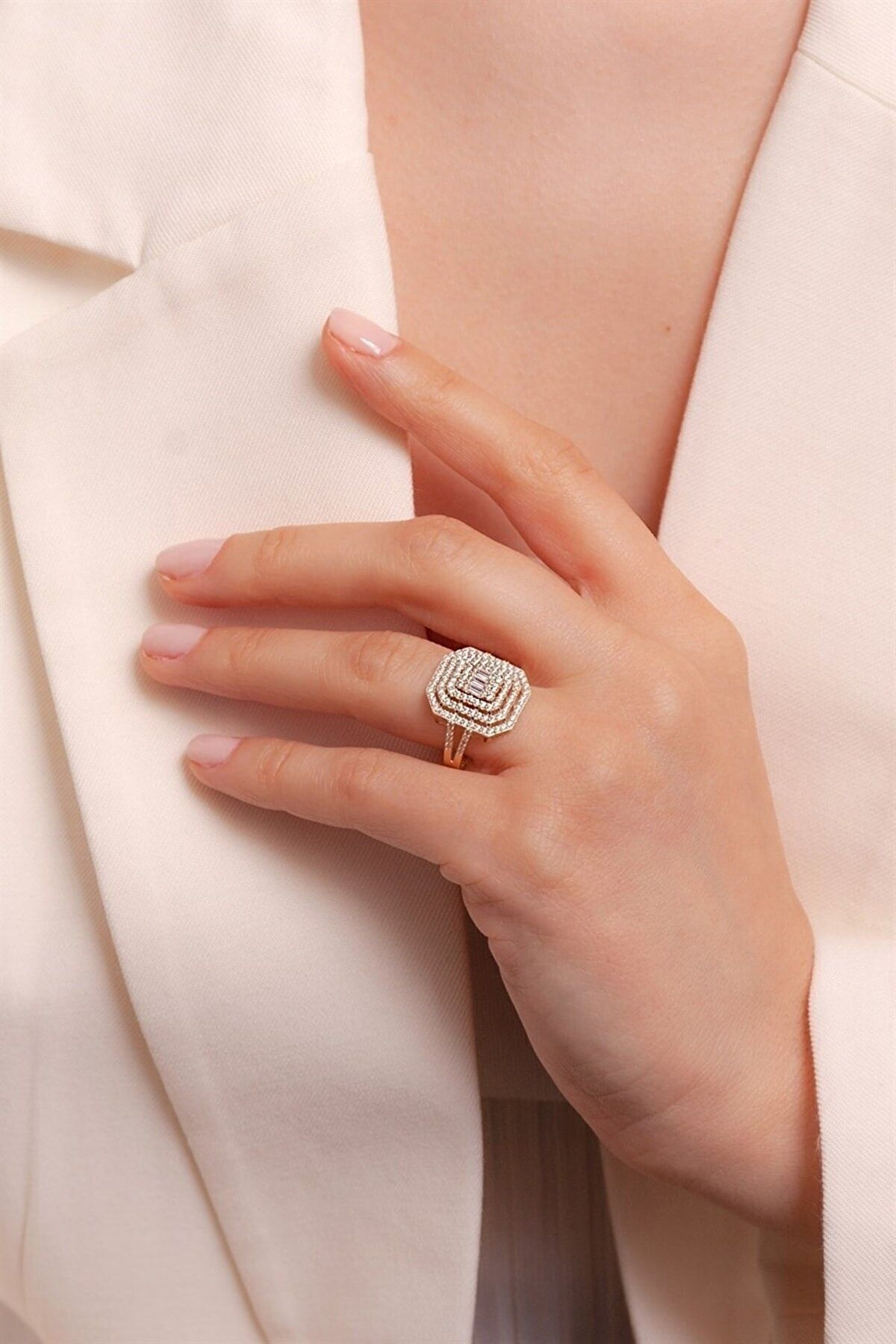 Baget şıklığında gösterişten taviz vermeyenler için tasarladığımız yüzük katlı yapısı ile gözleri kamaştıracak... 8 Ayar altından üretilen zirkonyum taşlı yüzüğün standart bir ölçüsünün ağırlığı yaklaşık olarak 2,35 gramdır. Ürün ağırlığı yüzük ölçüsüne göre değişmekte olup 2,10 - 2,50 gram aralığında gelmektedir. Ürün tamamen gerçek altındır. Ürün üzerinde 8 ayar (333) patenti yer almaktadır. Markamız giftinn’e özel mücevher kutusu ile gönderilmektedir. Garanti sertifikası mevcuttur. Yeni sezon tektaş koleksiyonumuz, rengârenk taşlar ya da minimal tasarımlar ile altının ayrıcalığını ekonomik bütçelerle mümkün kılarken