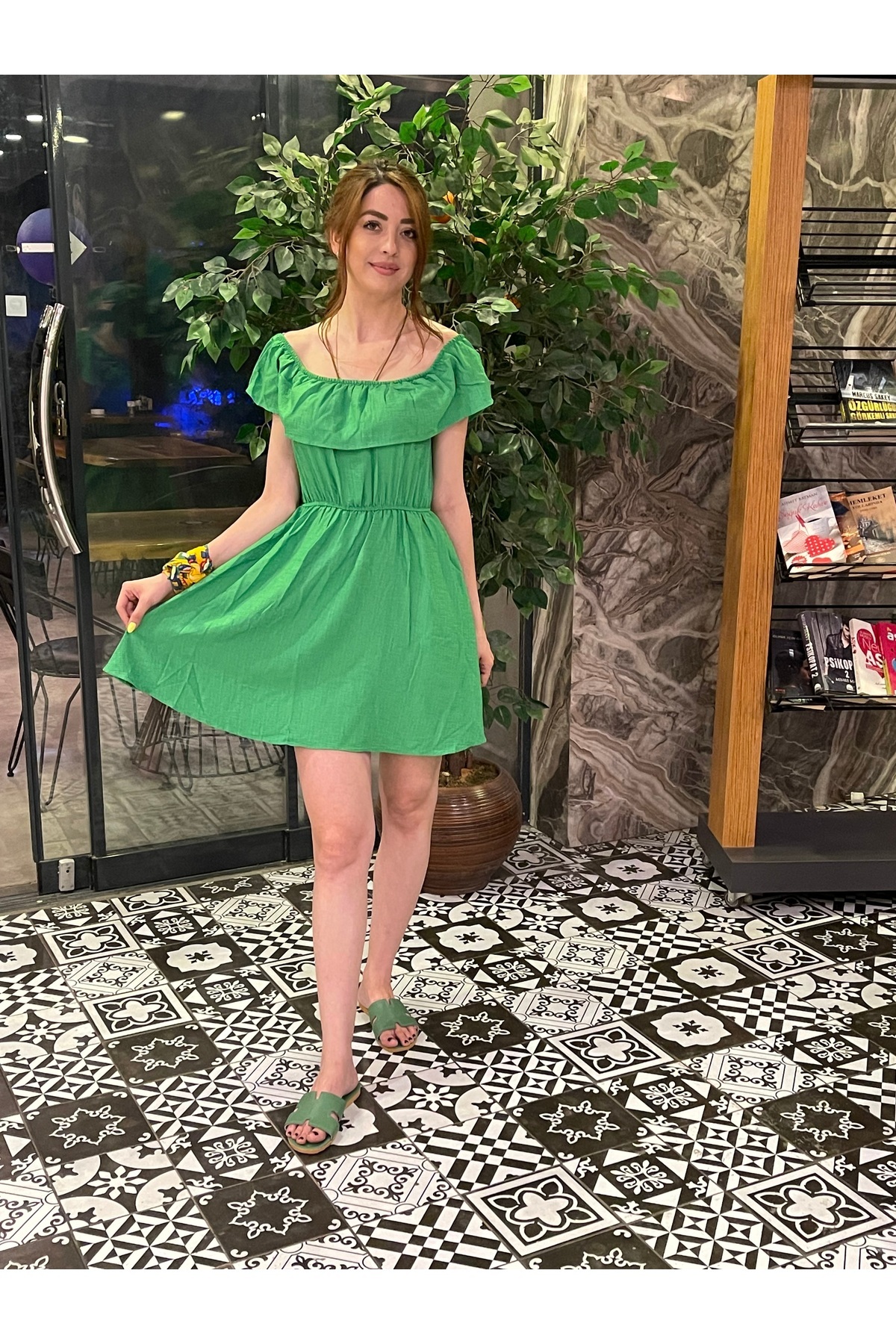Crop boyu sayesinde genç ve taze bir stil sunan bu elbise, günlük kullanım için idealdir.