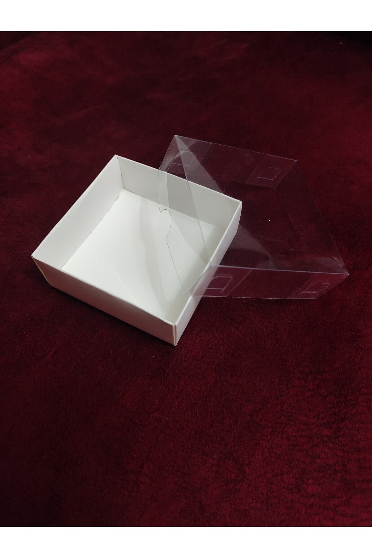 Beyaz Karton Kutu Asetat Kapaklı 100 Adet 8x8x3