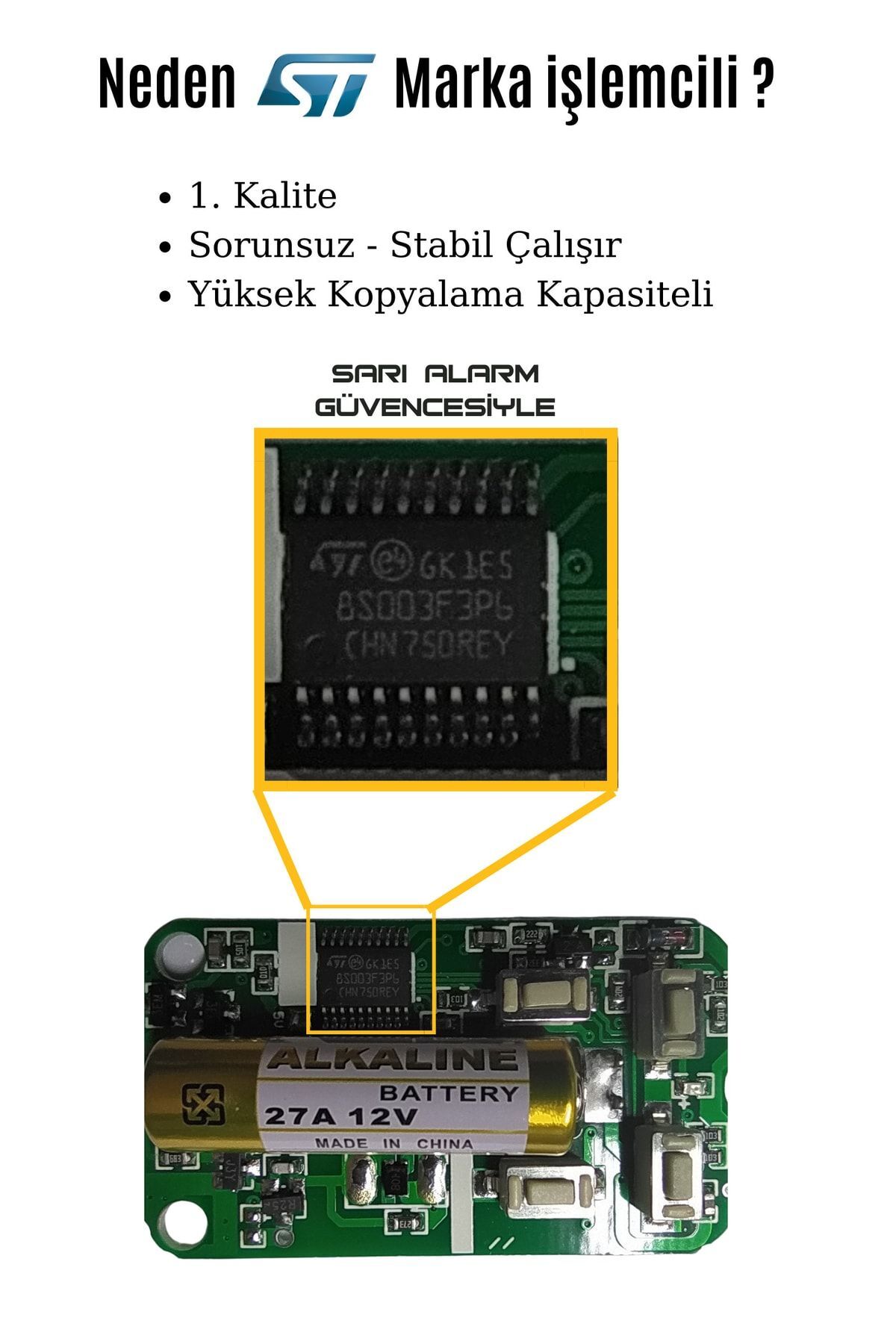FIX KODLU PİYASANIN EN GENİŞ İŞLEMCİLİ AKILLI KUMANDASI Piyasada en yaygın olarak kullanılan kumandalara uyumludur. 4 butonlu akıllı kumanda, öğrenebilen, kopyalanabilir garaj, kepenk, bariyer ve otopark kumandası