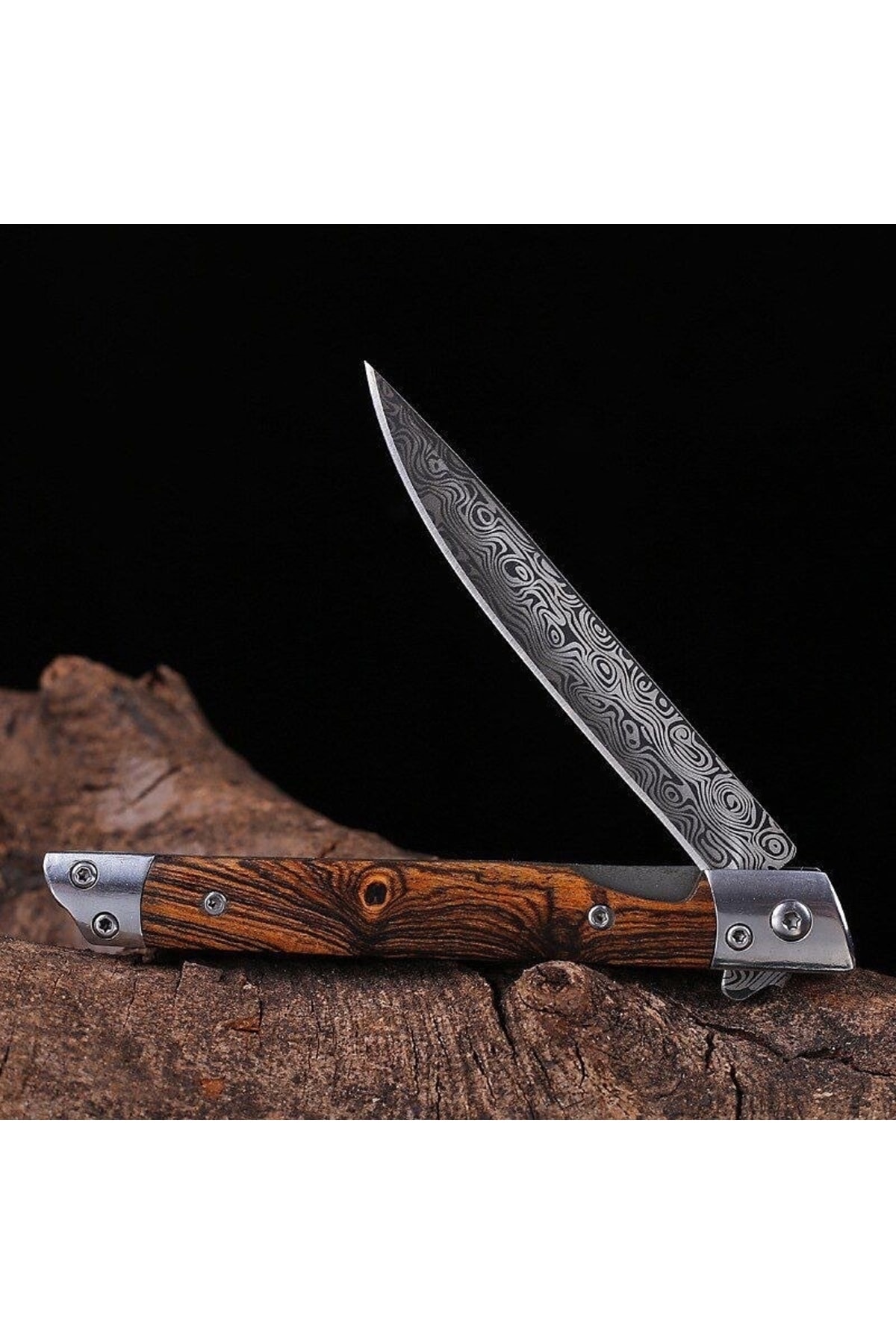 M-390 Damascus Katlanabilir Özel Deri Kılıf Hediyeli Çakı