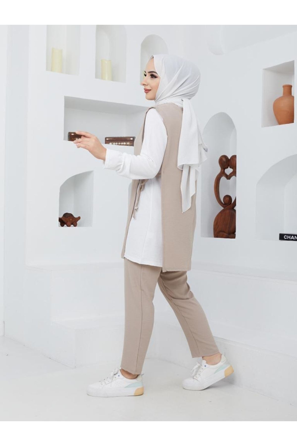 Uzun boy tunik, zarif bir siluet oluşturarak feminen bir görünüm kazandırır.
