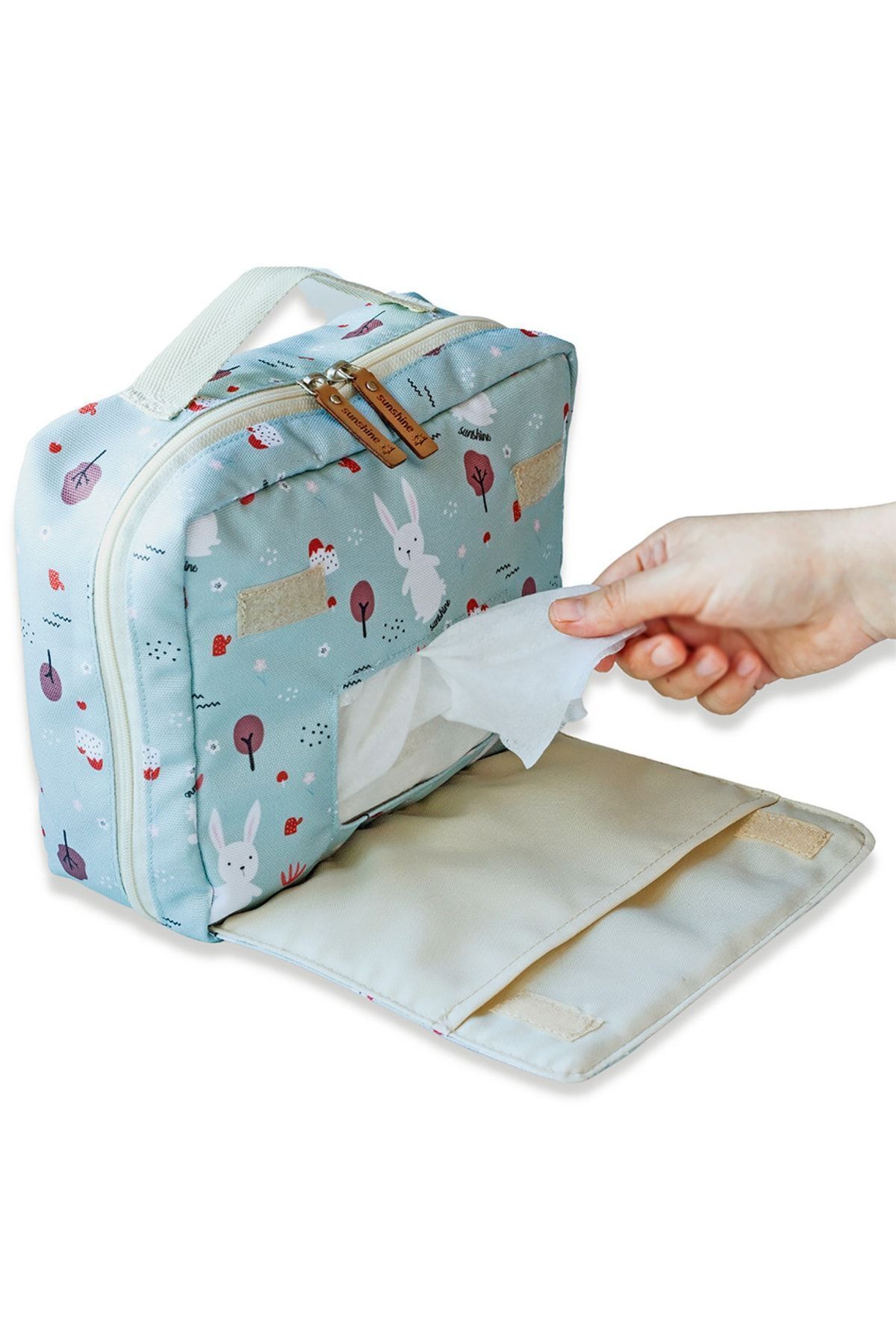 Pratik Islak Mendil gözü 8-10 adet bebek bezi gözü Alt Değiştirme örtü gözü *Deri fermuar elcikleri (Görselde yer alan bebek bezi,ıslak mendil, krem vb.